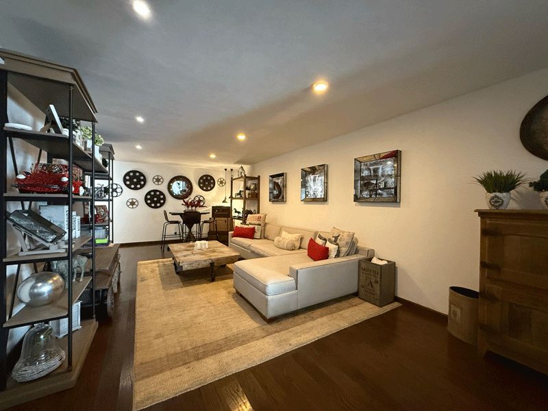 Casa en condominio de 8 casas. Remodelada hace 10 años, desarrollada en 3 niveles PLANTA BAJA (semi sótano): Estacionamiento cubierto para 6 autos y 2 autos descubiertos, salón de juegos con ½ baño y cava. 1er. Nivel: vestíbulo, ½ baño, clóset de visitas, sala a doble altura, comedor, cocina integral con alacena, estudio, Family Room, terraza descubierta y jardín junto a la sala, junto a la cocina cuarto de servicio con baño, cuarto de lavado y patio de tendido. 2º nivel: sala de T.V., 4 recámaras con vestidor y baño cada una; la recámara principal con sala y doble vestidor.