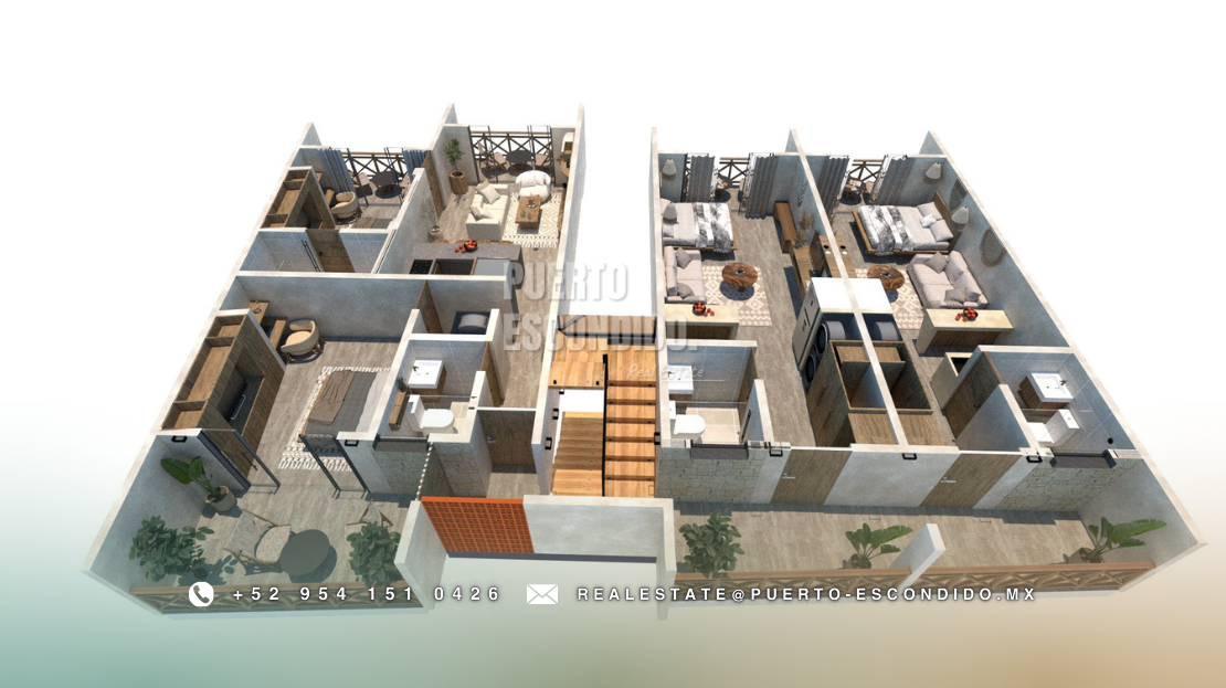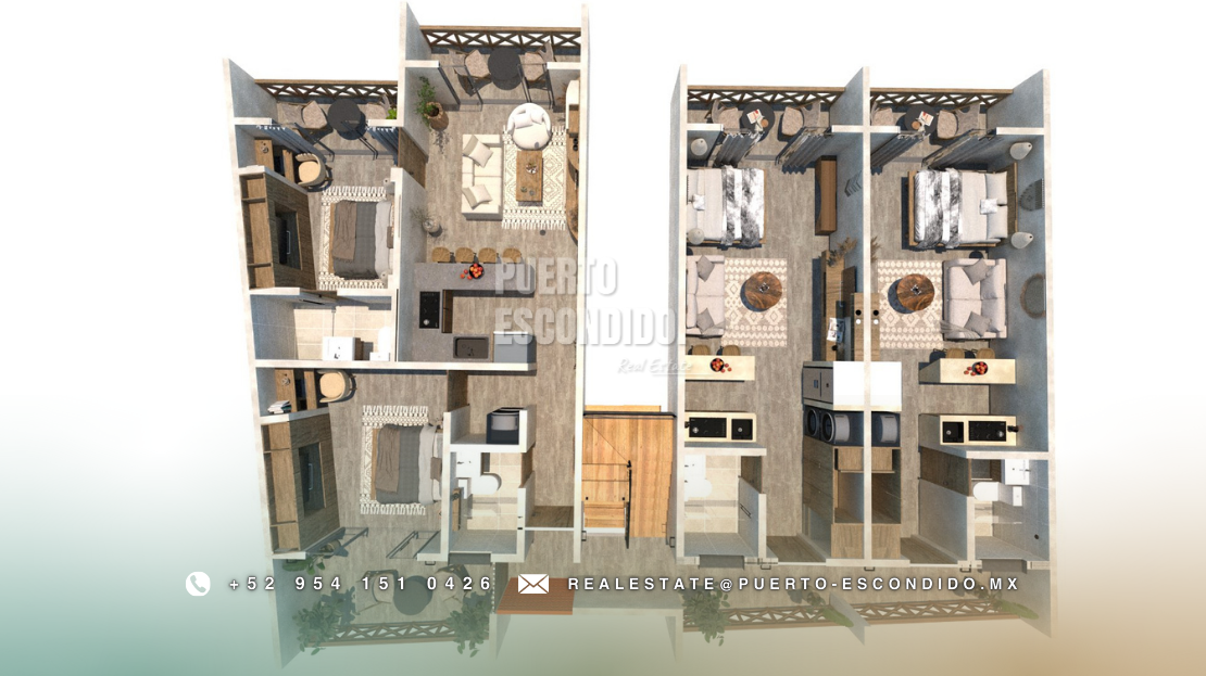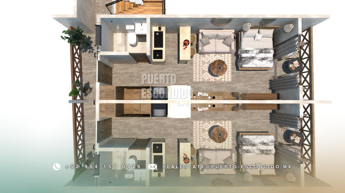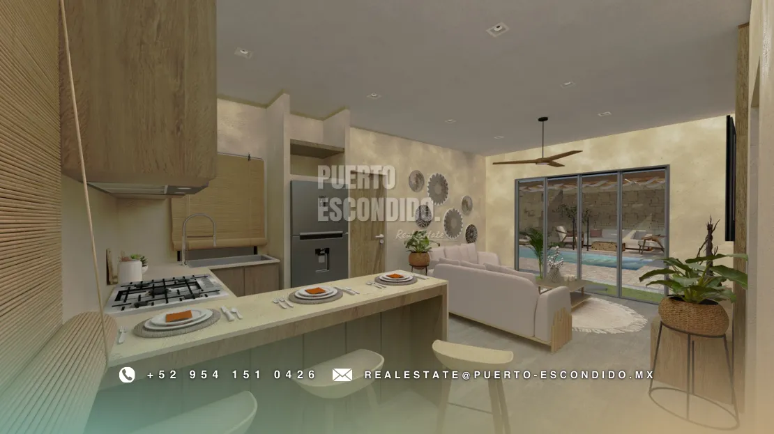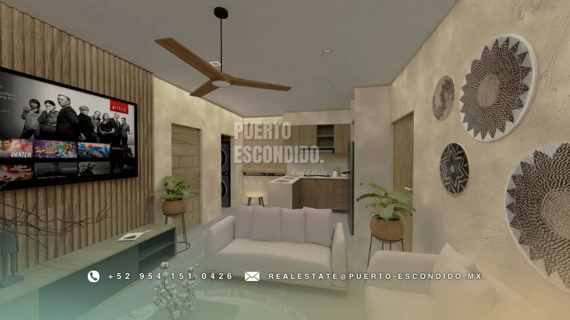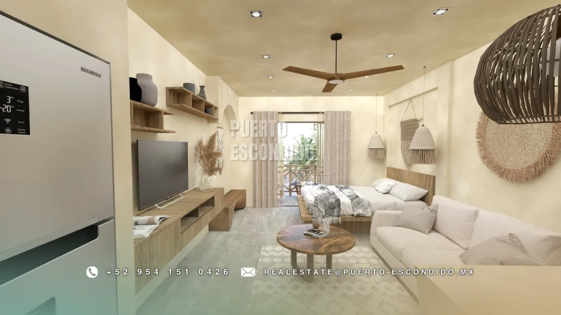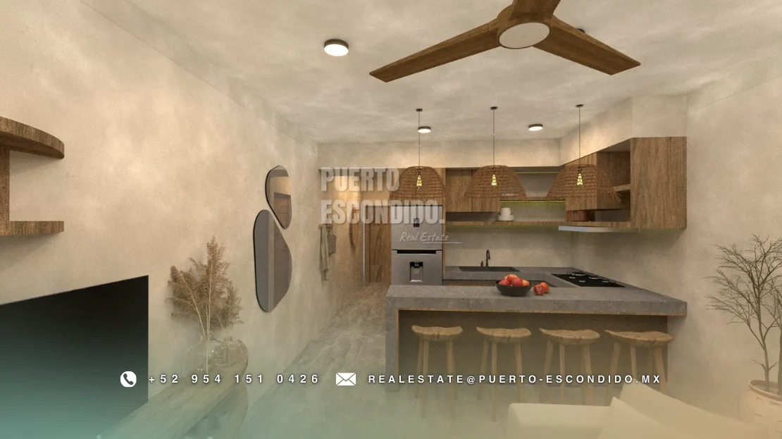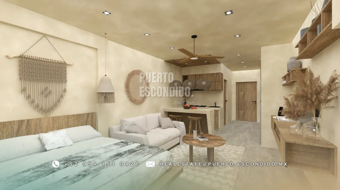 A pocos minutos de Playa La Punta y Zicatela, este desarrollo ofrece cercanía a cafés, mercados, y entretenimiento. Incluye rooftop con vista panorámica, área de asador, gimnasio, alberca y terrazas comunes.