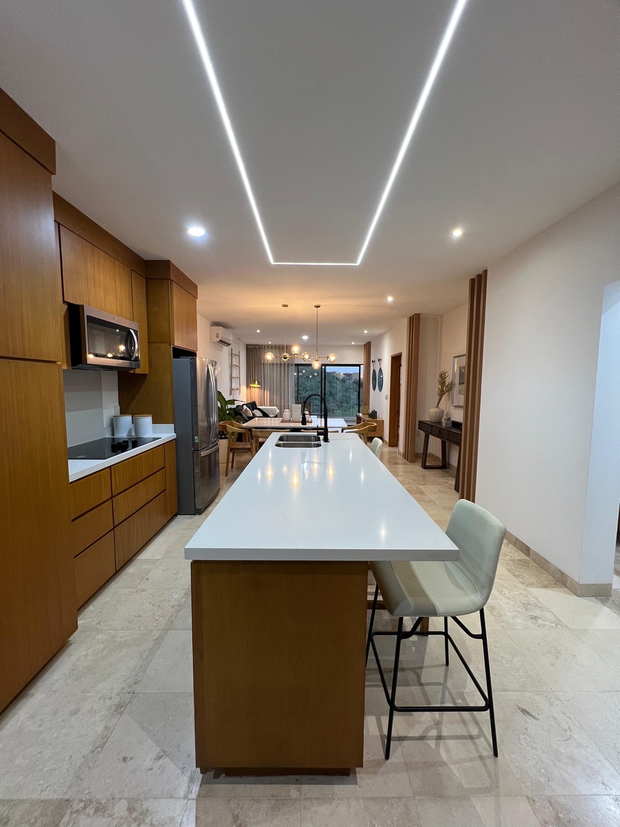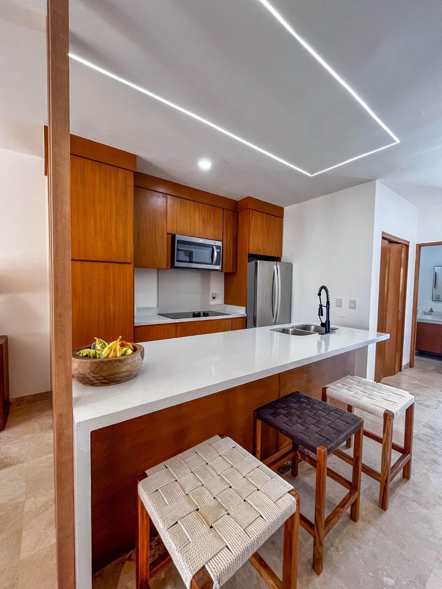 🍽️ Cocina integral equipada con estufa, microcampana y refrigerador