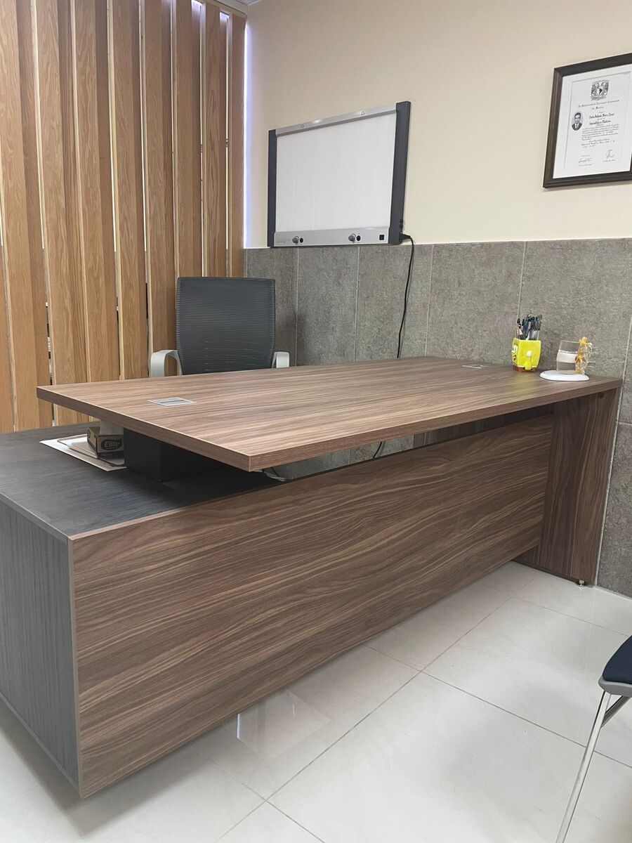 Escrivaninha, cadeira executiva e cadeira para pacientes