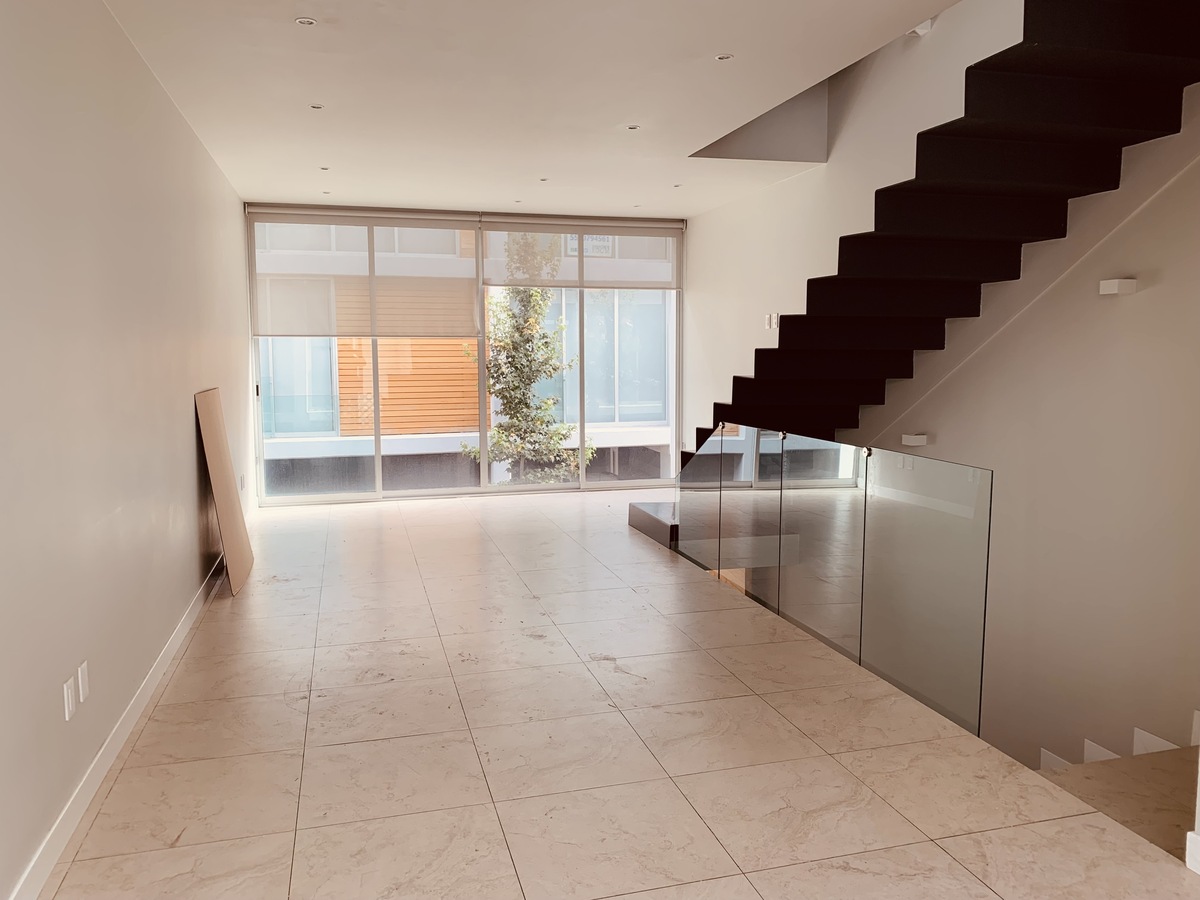 Casa (sem móveis) 3 níveis, no primeiro nível há sala de estar e cozinha aberta, tem tetos altos e janelas grandes que permitem a entrada de muita luz, no nível seguinte estão os 2 quartos, o principal com banheiro, ambos têm armários, banheiro completo com chuveiro e divisórias, no terceiro nível está o terraço com uma excelente vista. 2 vagas de estacionamento cobertas. despensa, área de lavanderia.Casa ( sin muebles) 3 niveles, en el primer nivel se encuentra salón comedor y cocina abierta, tiene techos altos y ventanales que permiten la entrada de abundante luz, en el siguiente nivel están las 2 recamaras , la principal con baño, las dos tiene closet, baño completo con ducha y canceles, en el tercer nivel esta el rooftop con excelente vista. 2 cajones de estacionamiento techado. bodega , área de lavado