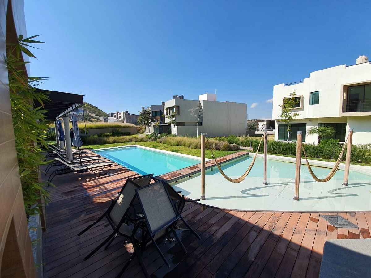 Cuenta con amenidades, como alberca, chapoteadero, salón de fiestas, terraza.