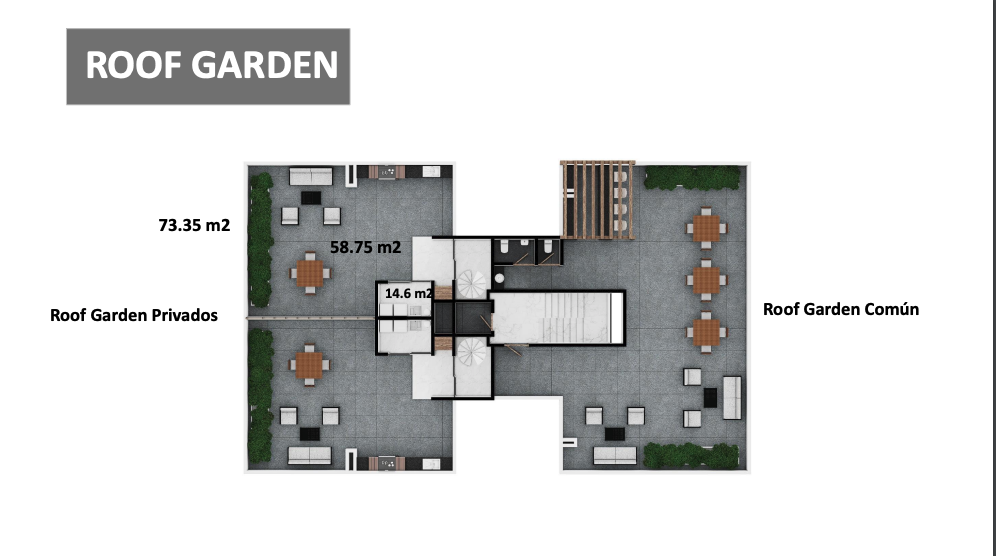 2 Estacionamientos y roof garden común.