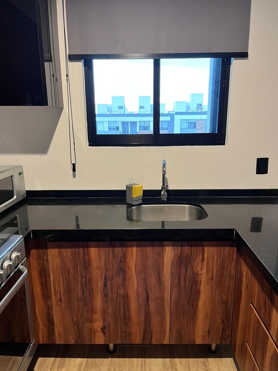 Ubicado en un edificio con vista al campo de golf. Con alberca y gimnasio. Mucha luz y no ruido de inquilinos arriba.