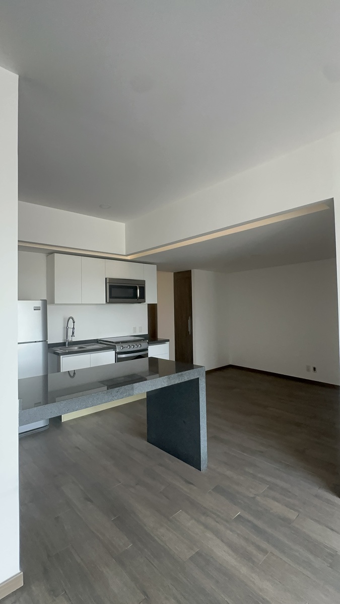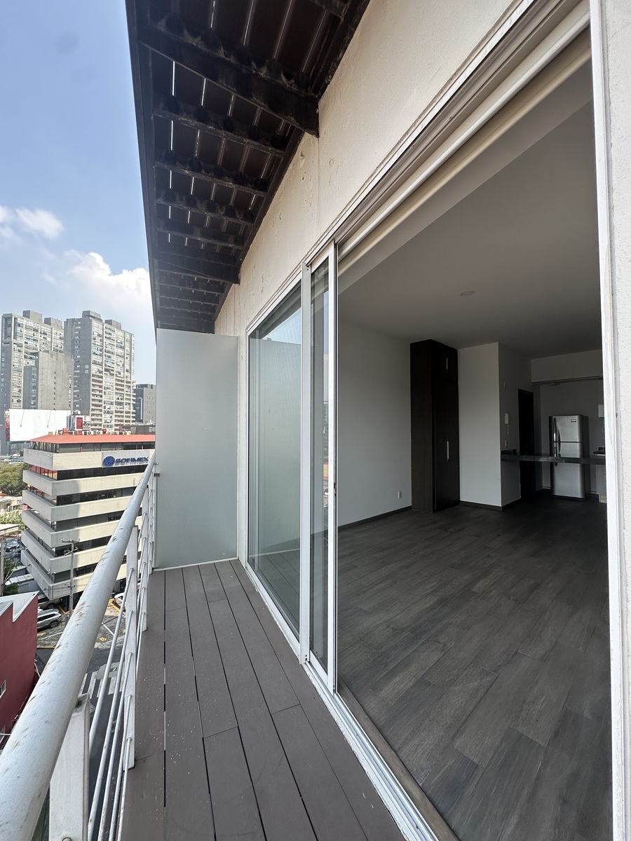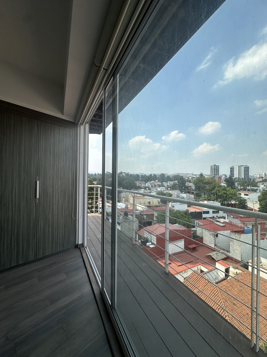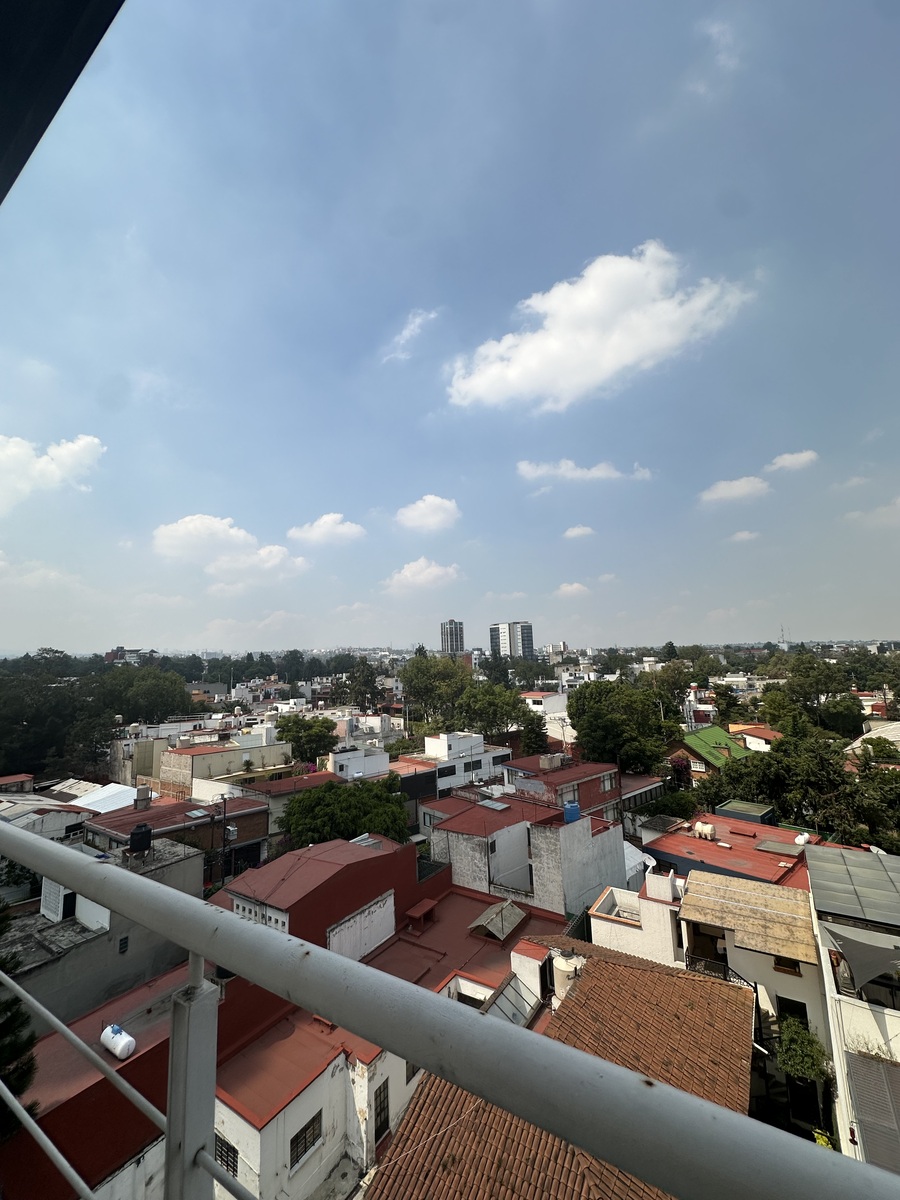 Departamento tipo estudio con doble ambiente, en una súper zona, a espaldas de un centro comercial y con vista desde la terraza al poniente de la CDMX. Y a 5 min. caminando de una plaza comercial pequeña con lugares para tomar café, desayunar, bancos, estéticas, walmart, etc.
