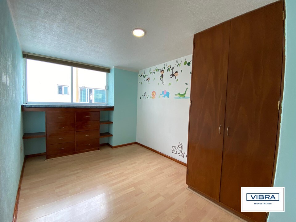 La recámara secundaría cuenta con closet y comparte baño con la recámara 3, que es más pequeña, también con closet.