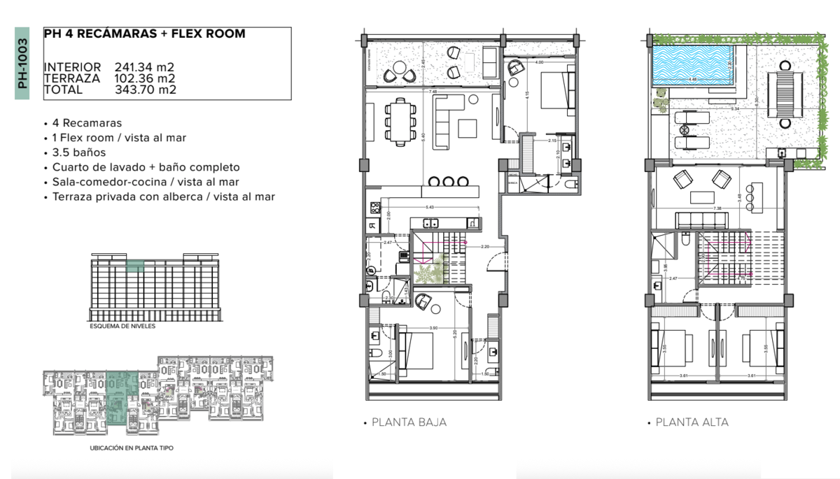 • Terraza privada con alberca / vista al mar