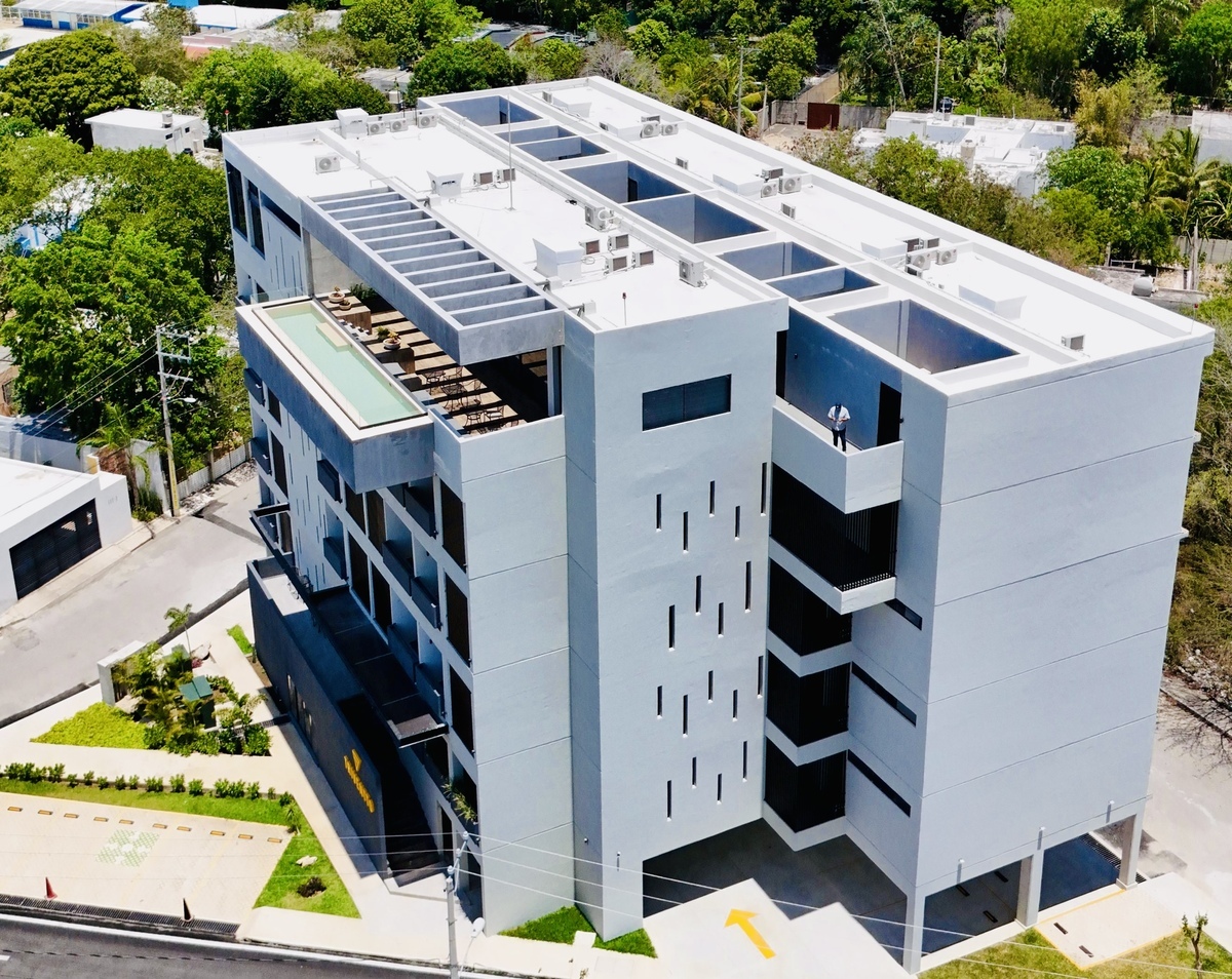 Proyecto de 37 departamentos de una recámara y 6 penthouse-dúo con sistema lock off. Diseñados con una exquisita propuesta arquitectónica.