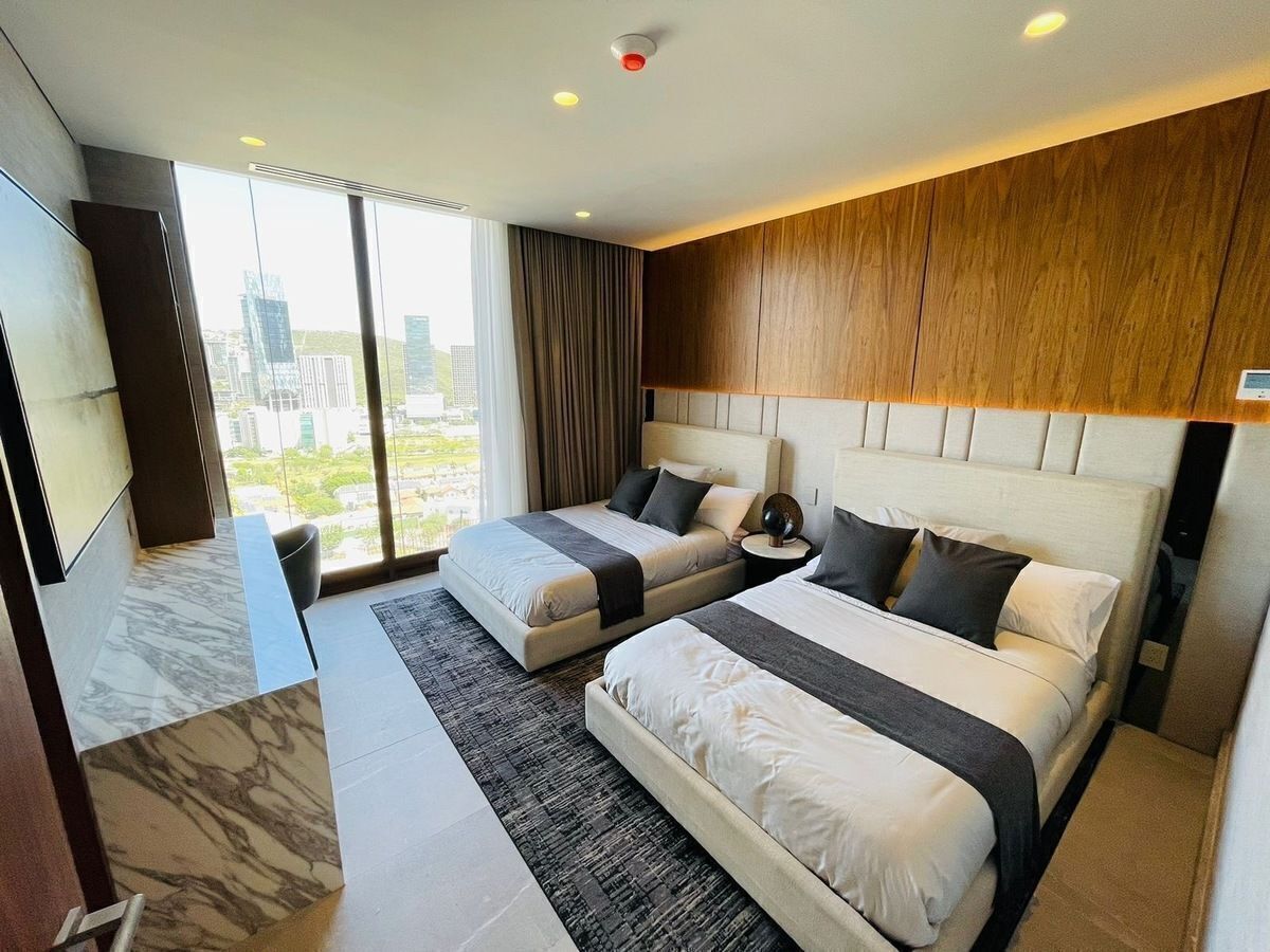 Hermoso departamento listo para estrenar, ubicado en torre de lujo con excelentes acabados en el área de Valle oriente 277.44 mts de interior más balcón, bodega y tres cajones de estacionamiento.