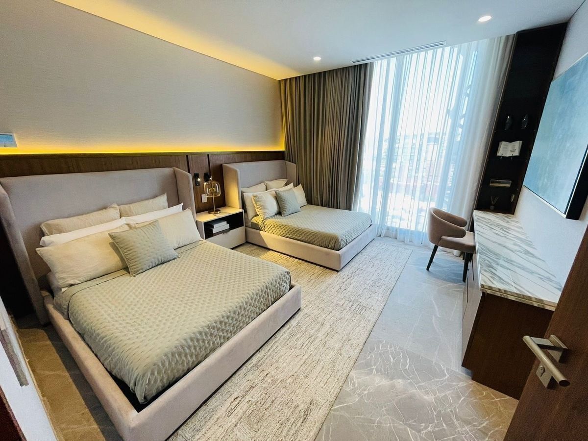 Cuenta con 3 recámaras cada una con baño vestidor, terraza, sala de TV, cuarto de servcio.