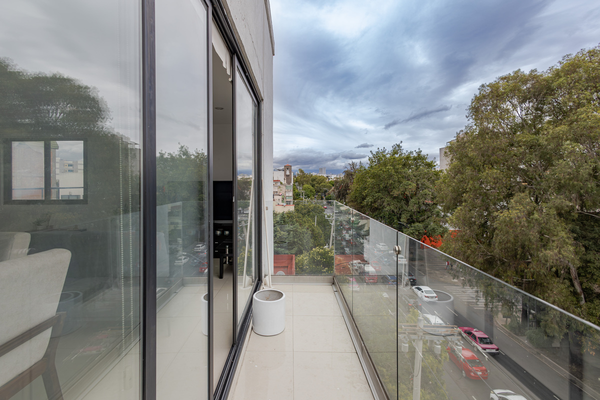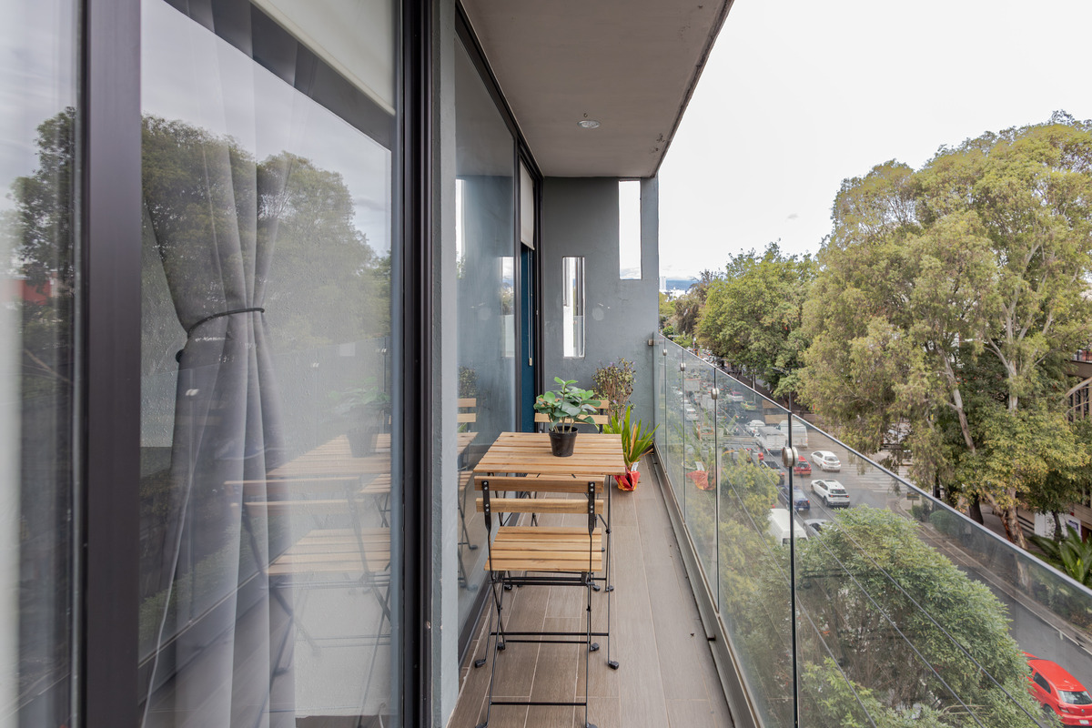 La estancia y la recámara principal tienen balcón, ideales para disfrutar del aire libre y la vista urbana.
