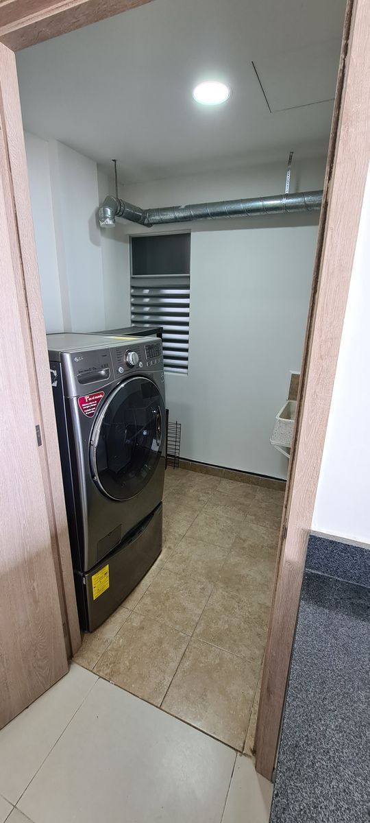Cuarto de lavado con Lavadora LG de 13 kg y plancha.