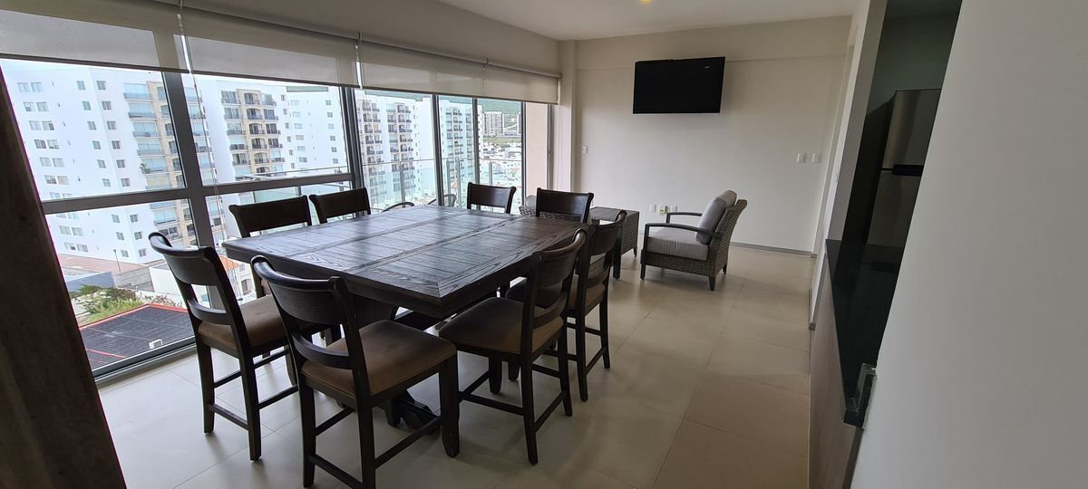 Cuenta con una hermosa vista desde el piso 12 y una terraza ideal para un asador, sala para exteriores, etc.