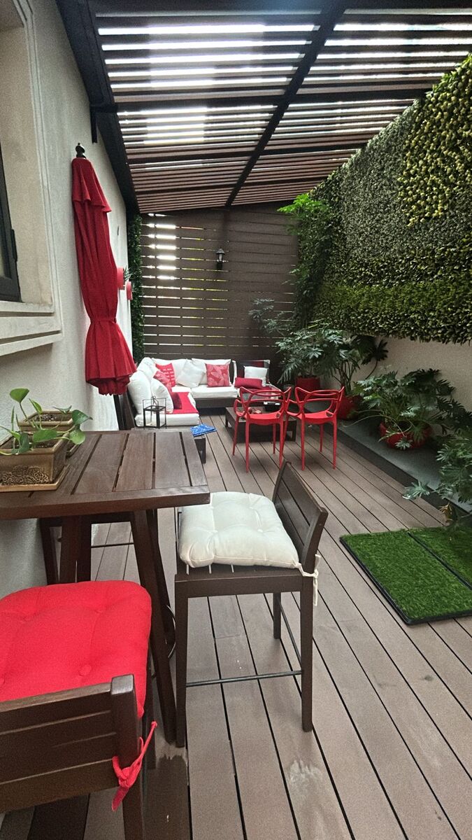 Padrísimo,departamento nuevo, todo está nuevo, también cuenta con salida para una mascota pequeña, las persianas son eléctricas Blackout, las otras son manuales, los acabados están excelentes y nuevo.
