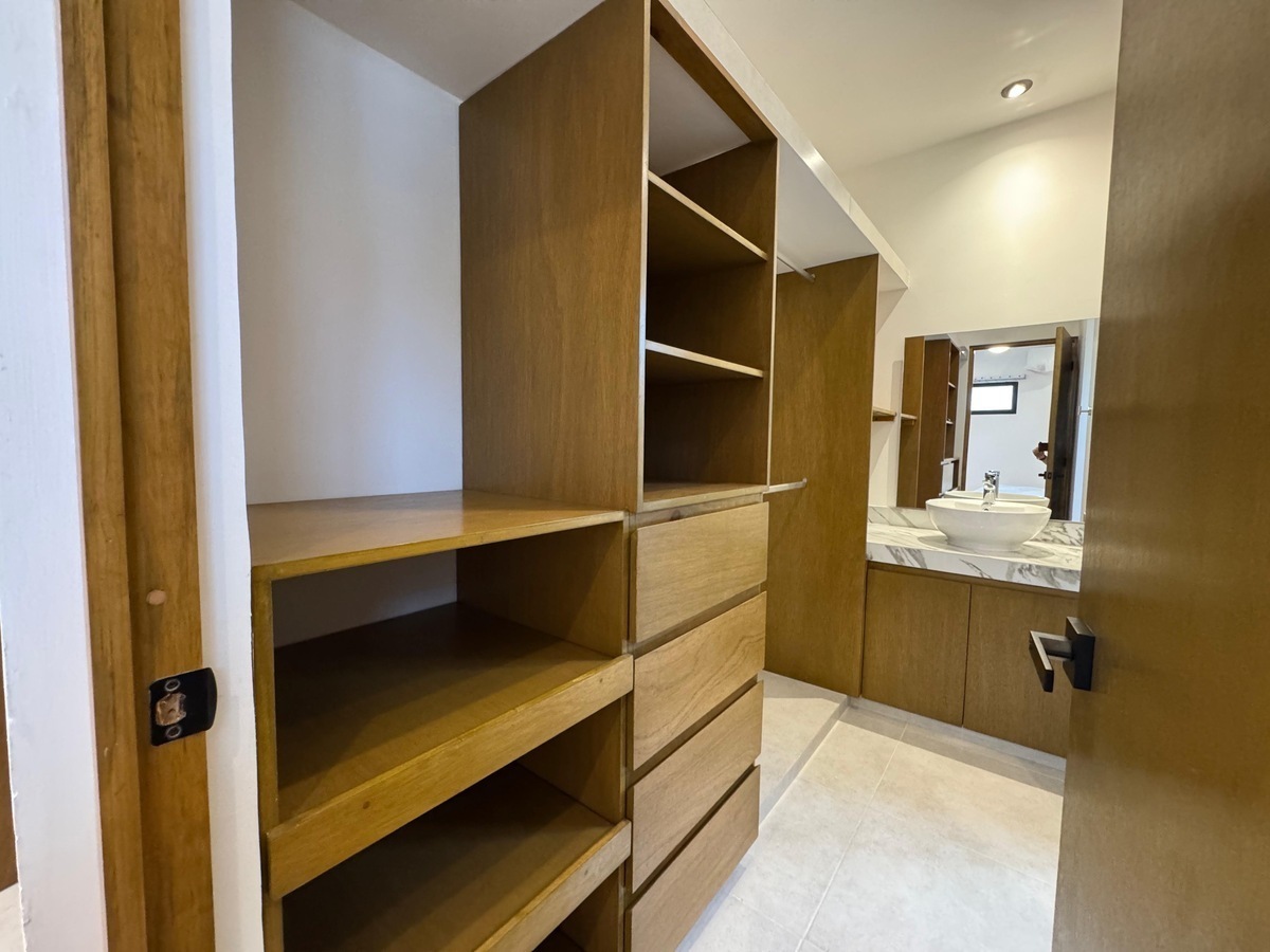 La principal está vestida con una cama tamaño King y tiene un walk-in closet de buen tamaño y baño privado. La secundaria, está vestida con una cama matrimonial.