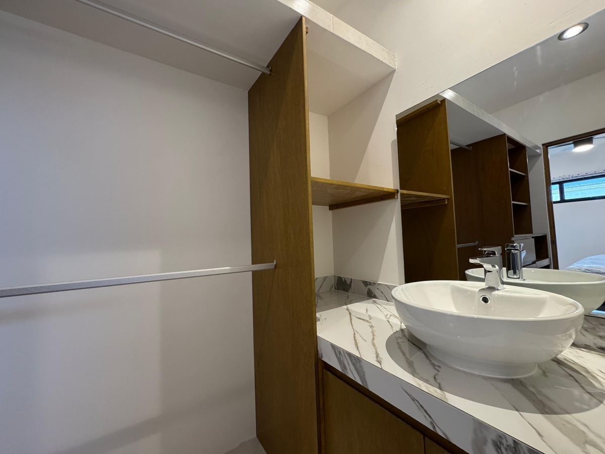 Atrás de ella, un closet de lavado, con instalación lista y un lavadero estilo México. No incluye lavadora.