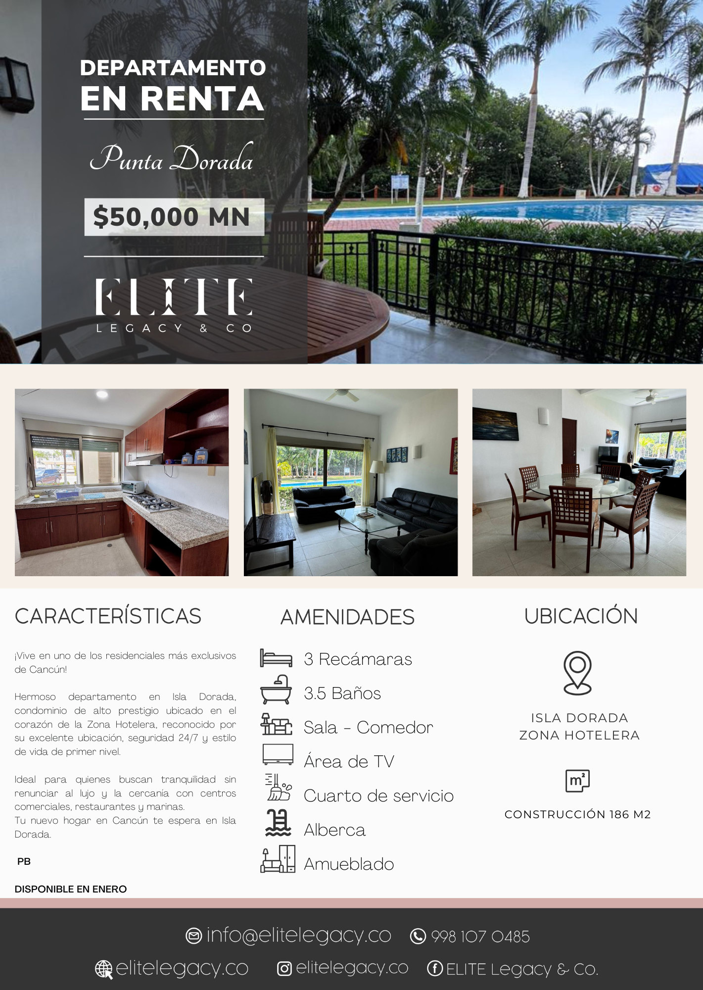 Renta hermoso departamento en Isla Dorada, condominio de alto prestigio ubicado en el corazón de la Zona Hotelera, reconocido por su excelente ubicación, seguridad 24/7 y estilo de vida de primer nivel.