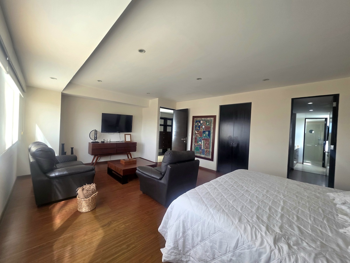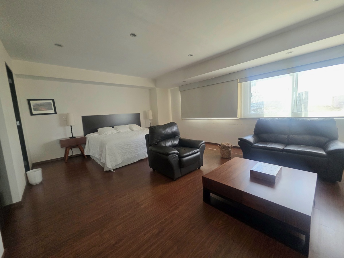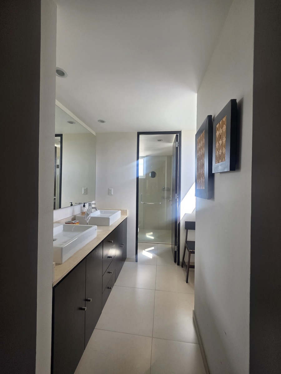 Apartamento mobiliado para alugar localizado em Teide, Querétaro, com uma área de 200 m² que combina elegância, amplitude e conforto. A propriedade conta com três quartos, cada um com banheiro completo, além de um lavabo para visitas. A cozinha está equipada com bancada de granito, oferecendo um espaço moderno e funcional, ideal para quem gosta de cozinhar. O apartamento inclui varanda com vista, duas vagas de estacionamento e gás natural, proporcionando praticidade e conforto.