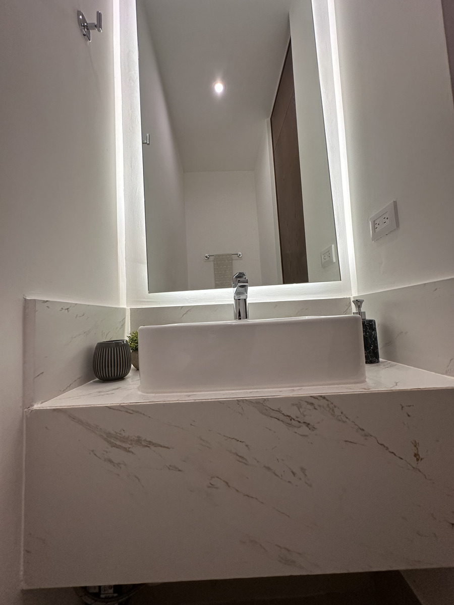 Cada recamara cuenta con s u propio baño, mientras que el área común tiene medio baño para visitas