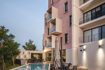 * Esta é uma renderização que pode variar em relação ao resultado real.*MONNÉ es un desarrollo compuesto de 75 departamentos dispuestos en 2 torres gemelas que convergen en una zona de áreas comunes con una variedad de amenidades. Ofrece 8 diferentes modelos entre estudios y departamentos de 1 y 2 recámaras, distribuidos en 5 niveles.