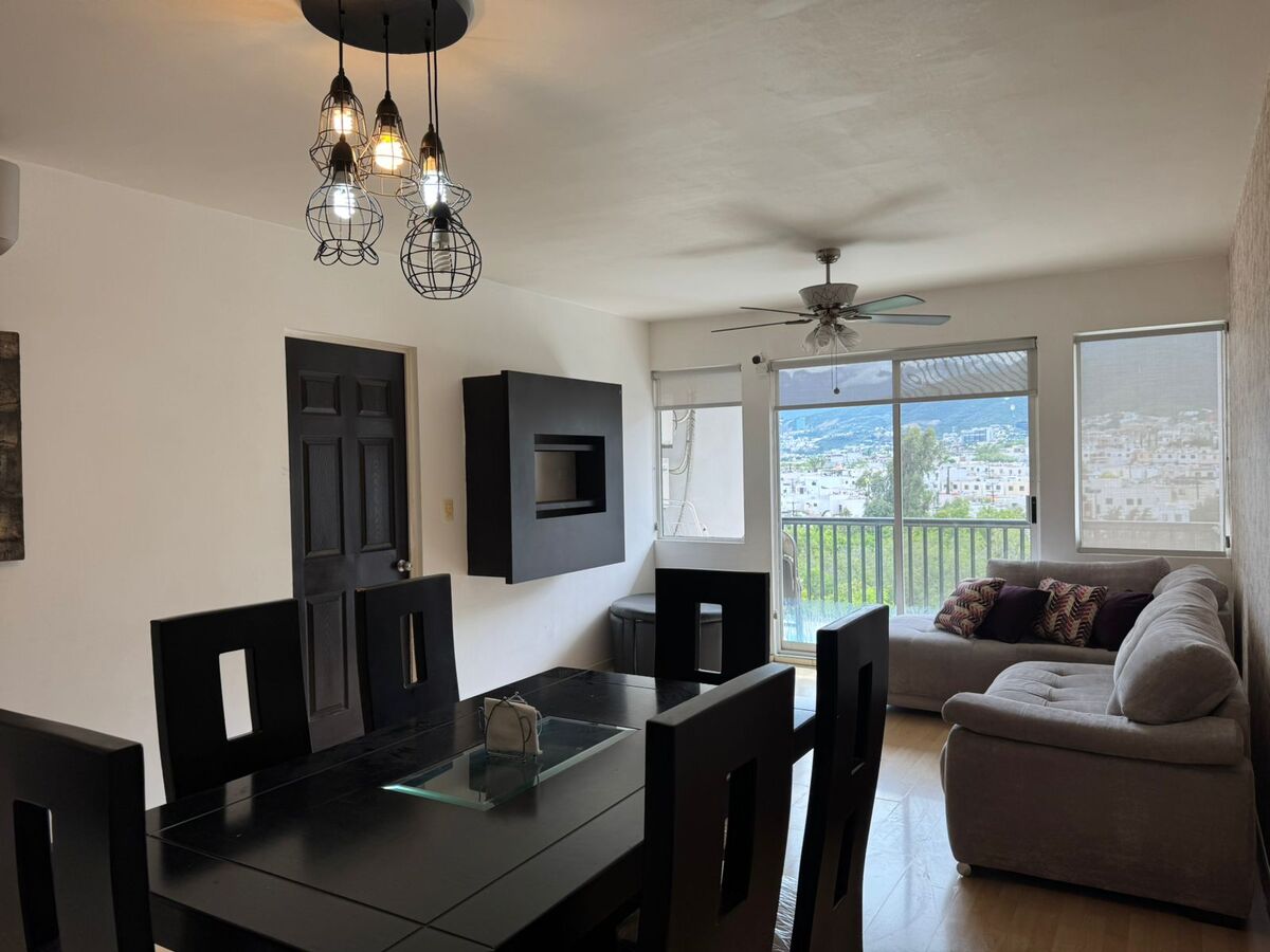 Se renta departamento amueblado y equipado en complejo departamental con vigilancia 24/7, áreas verdes y alberca. Fácil acceso a avenidas principales como Av. Paseo de los Leones y Av. Ruiz Cortines, a unas cuadras de la UVM Cumbres.