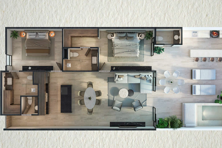 **Las ilustraciones deberán ser considerados como una guía o representación gráfica cercana al producto final, el cuál podría tener ajustes o modificaciones. Los muebles, elementos decorativos, luminarias y demás accesorios y/o equipamiento no están incluidos en el precio de venta y entrega de la propiedad a menos que se estipule por escrito lo contrario. Consulte con su asesor cuál es el equipamiento y/o accesorios a entregar.