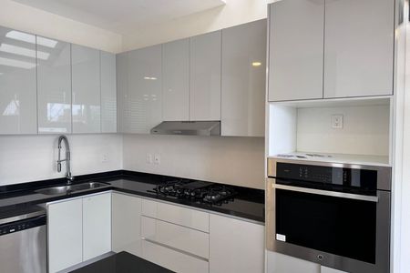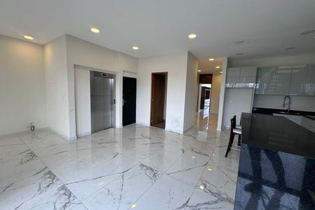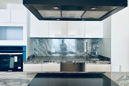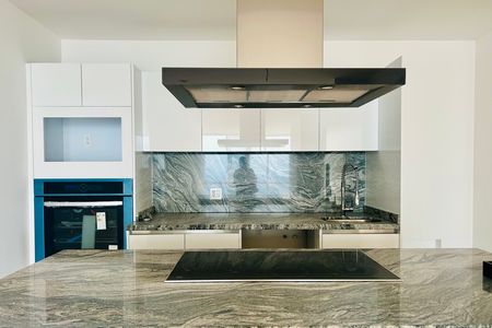 Este apartamento se destaca por seus acabamentos de luxo exclusivos em mármore, presentes na cozinha, sala de jantar e banheiros. As bancadas da cozinha e da sala de jantar possuem superfícies elegantes de mármore que trazem um toque sofisticado e durável, enquanto os banheiros são revestidos com este material premium, realçando o design moderno e refinado do espaço.