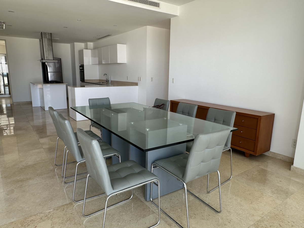 - Comedor con mesa de cristal, 8 sillas y credenza