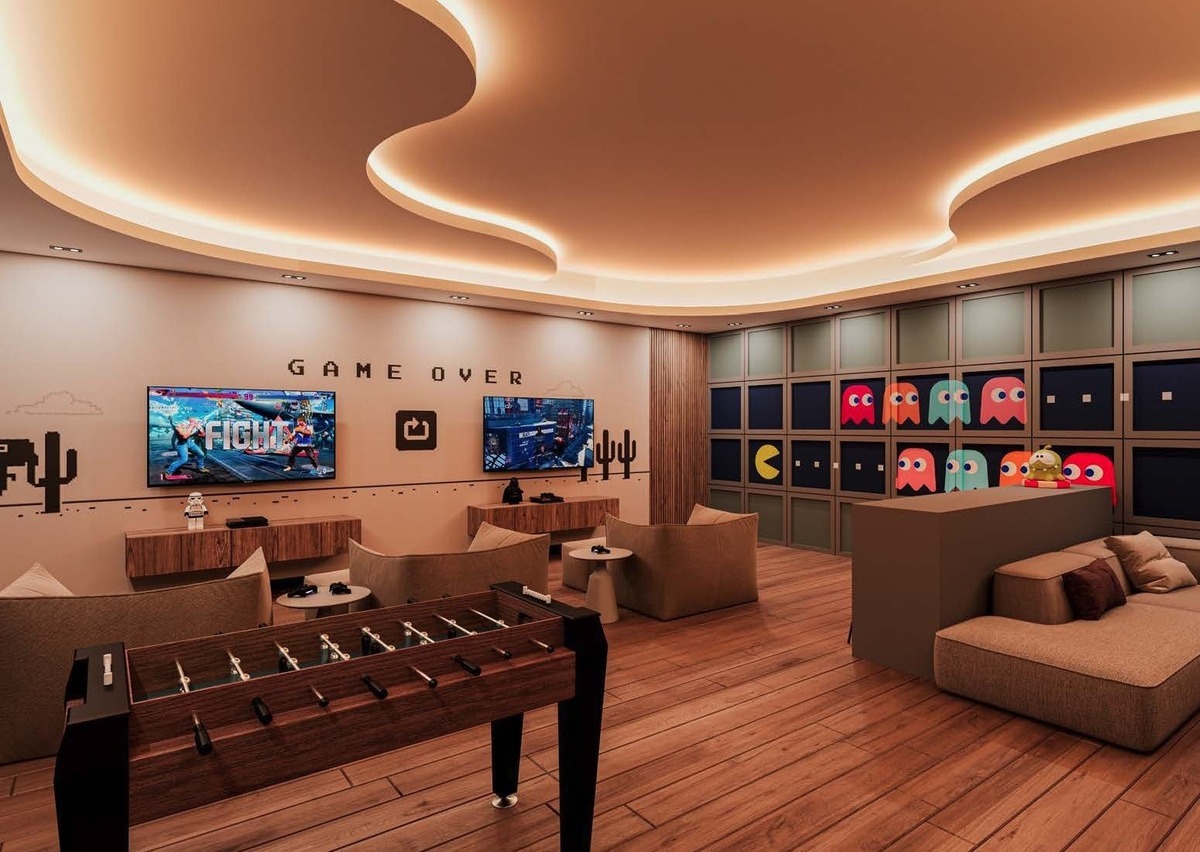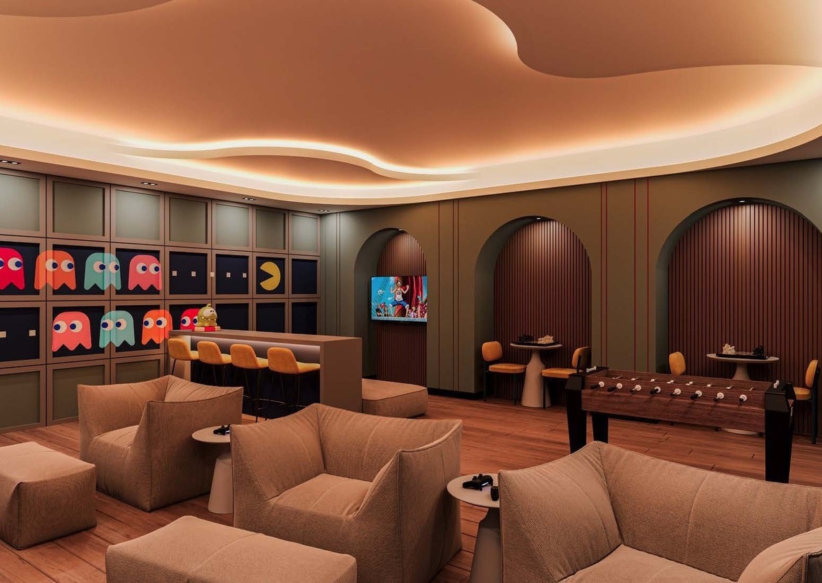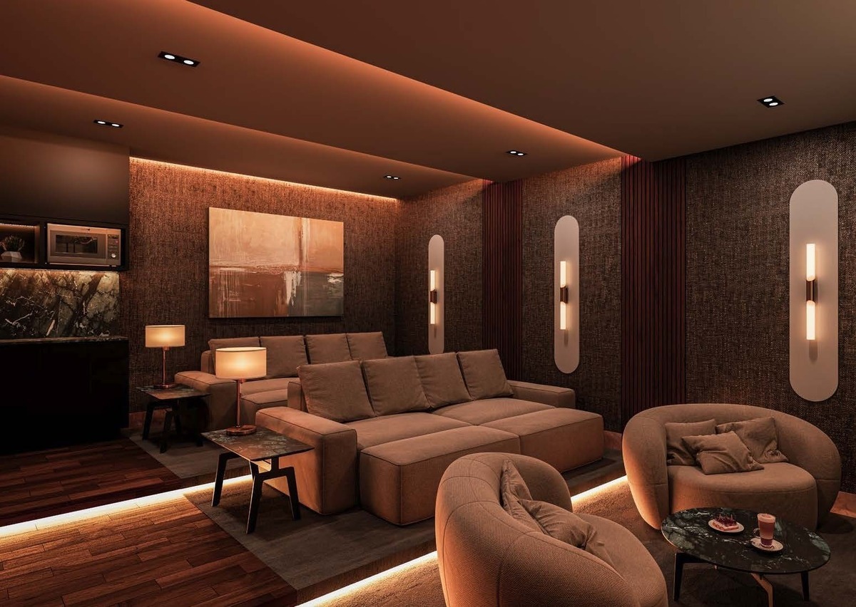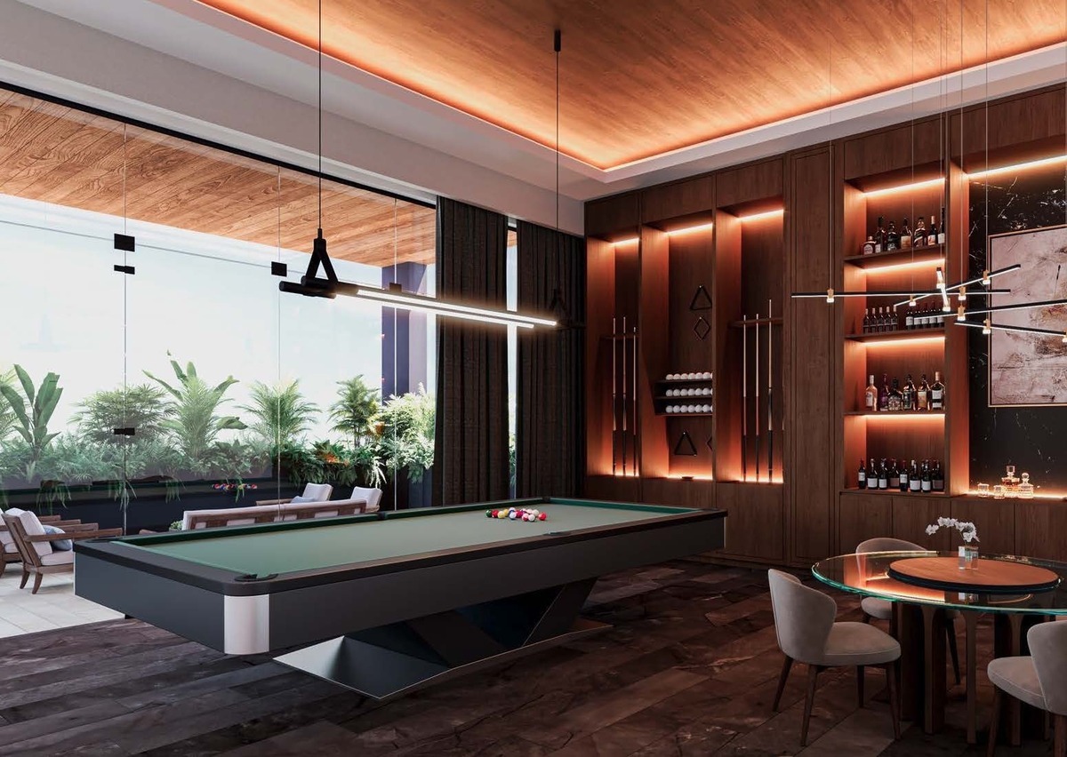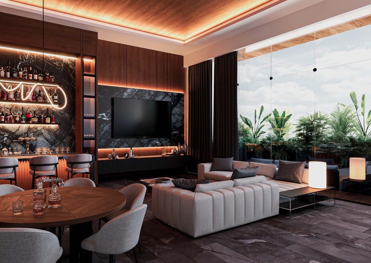 desfrutar das mais seletivas amenidades e serviços que lhe permitirá desfrutar da poesia da luz do amanhecer ao pôr do sol no ponto mais alto do projeto. Lounge bar, bar mirante na terraço, bar de vinhos Cavay, sala de jogos privada, cozinha e salões privados.