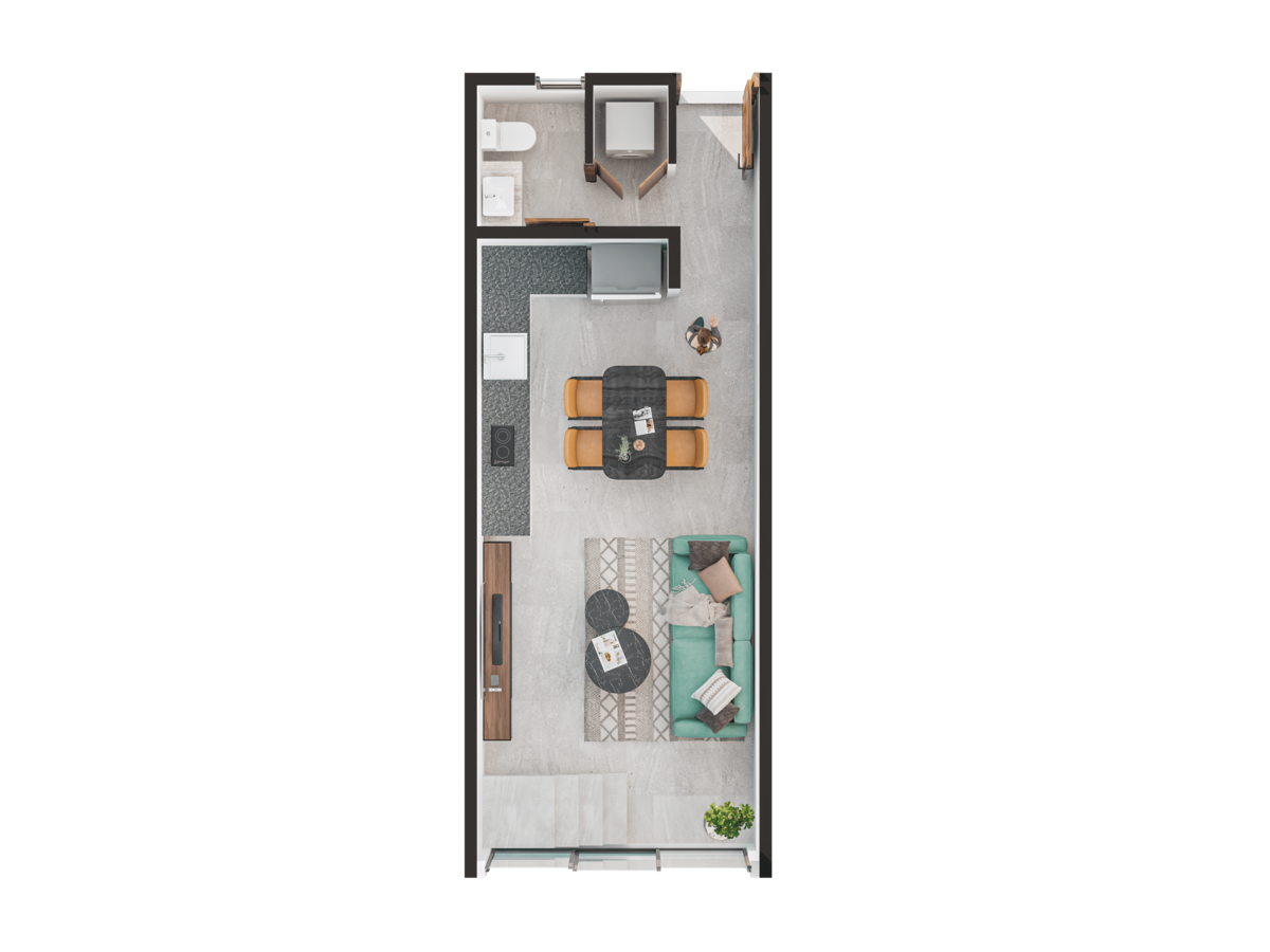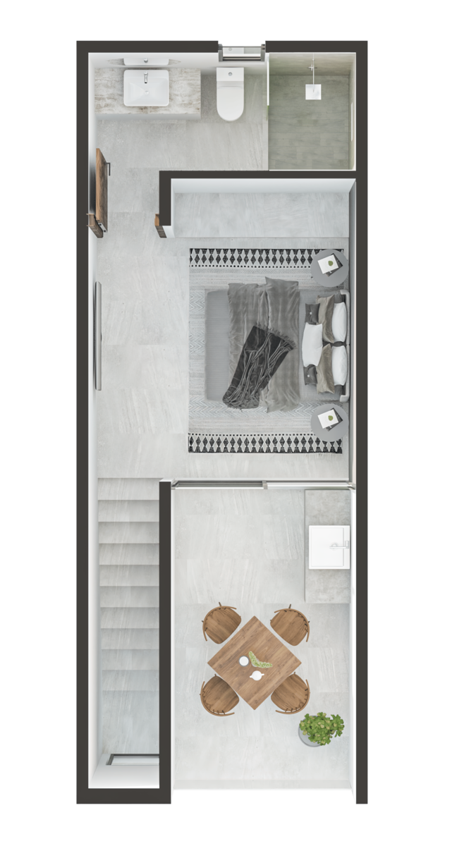 MODELO LOFT B/ 1 RECÁMARA/ 58 MT2/ TERRAZA 9,28 MT2/ CAJÓN 12,50 MT2