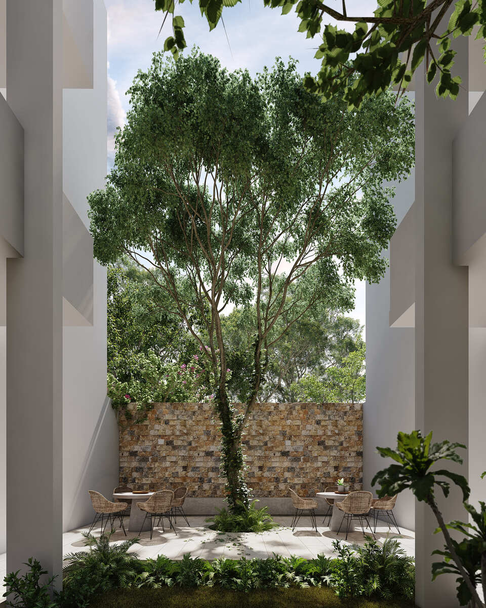 NUAN es un complejo de 45 departamentos de 1 y 2 recámaras; ubicados en Temozón Norte, zona de alta plusvalía; cuenta con tres niveles, elevador y amenidades.