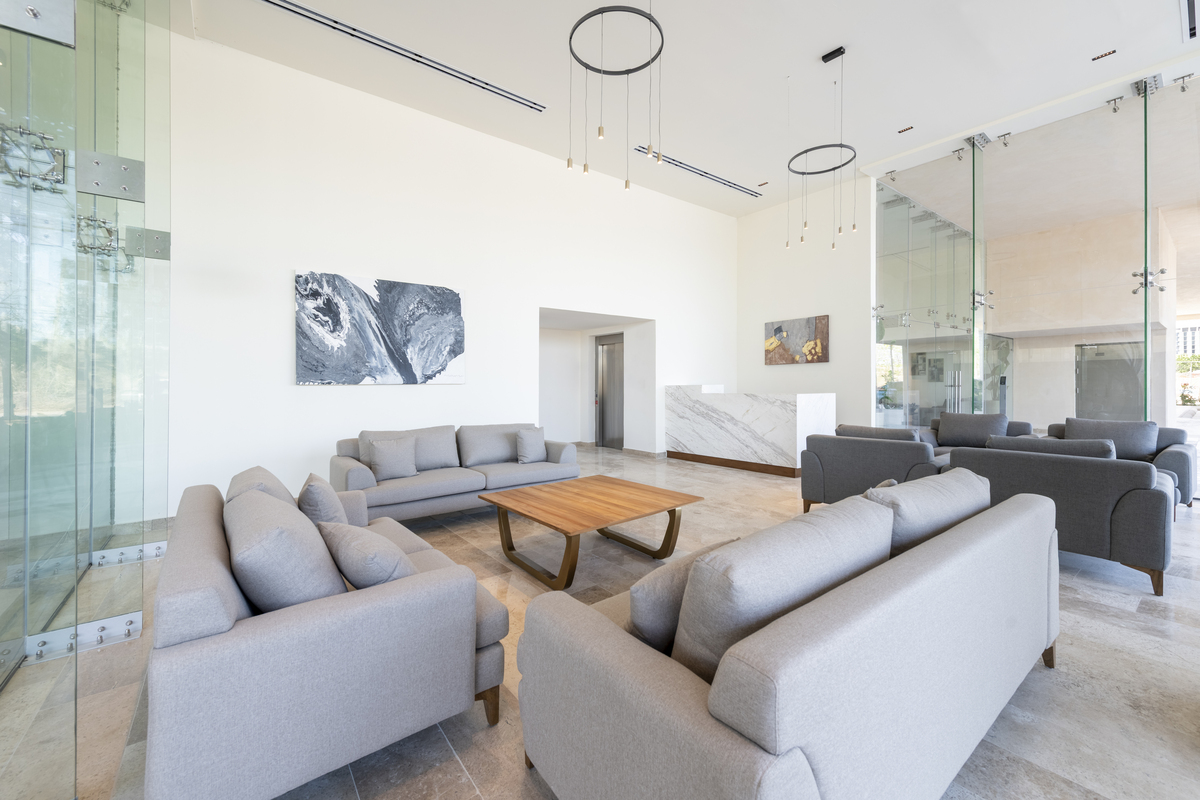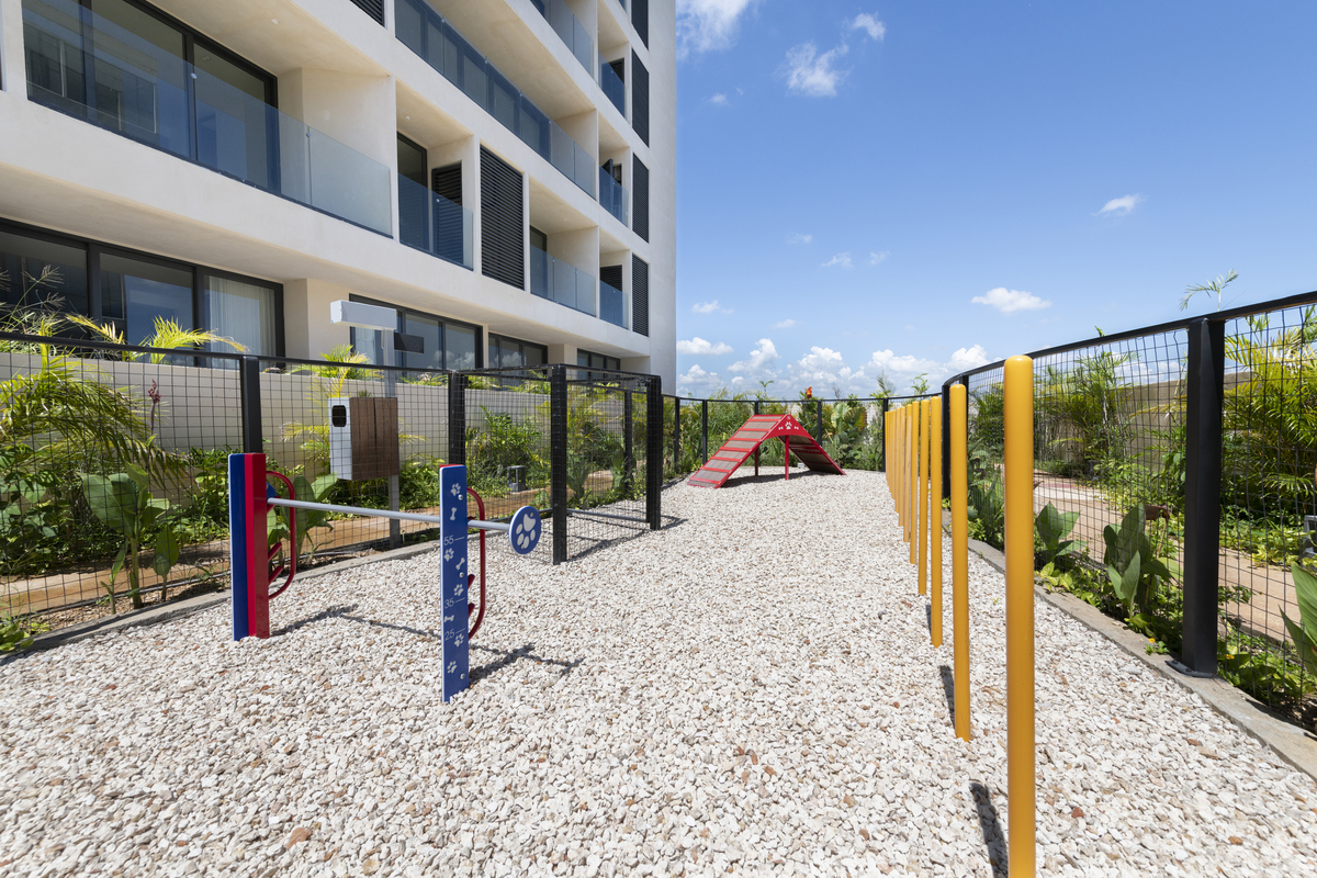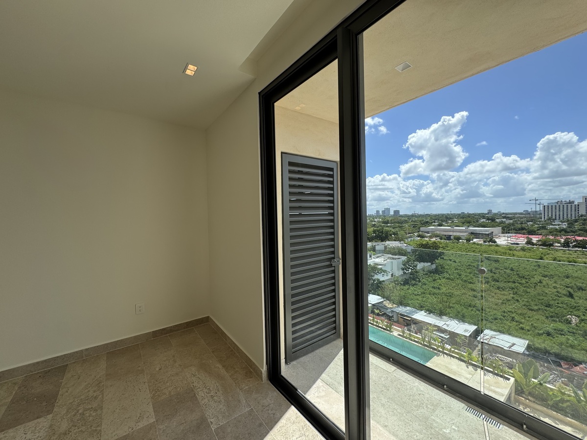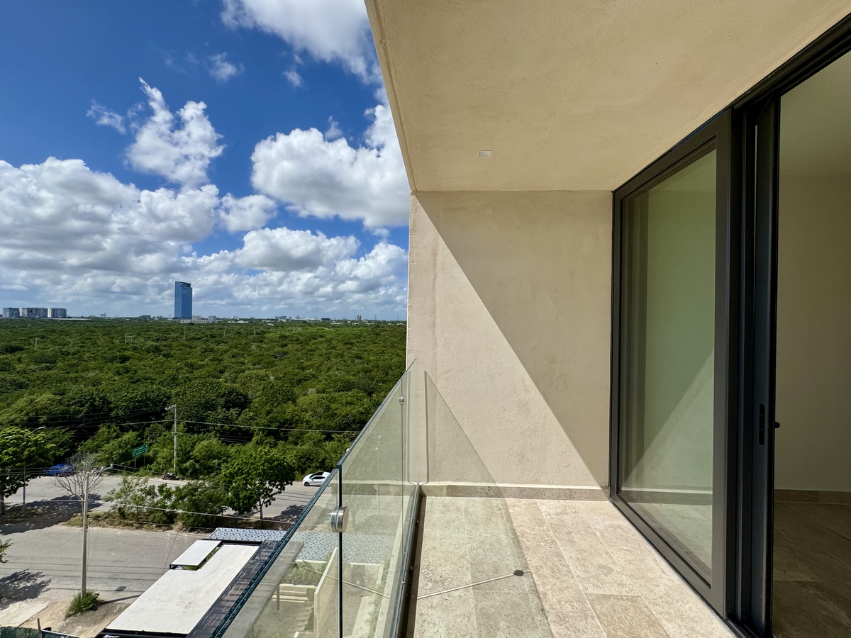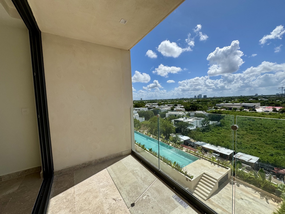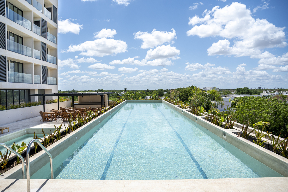 Modelo San Cristóbal no sexto andar, com vista para a piscina das comodidades.