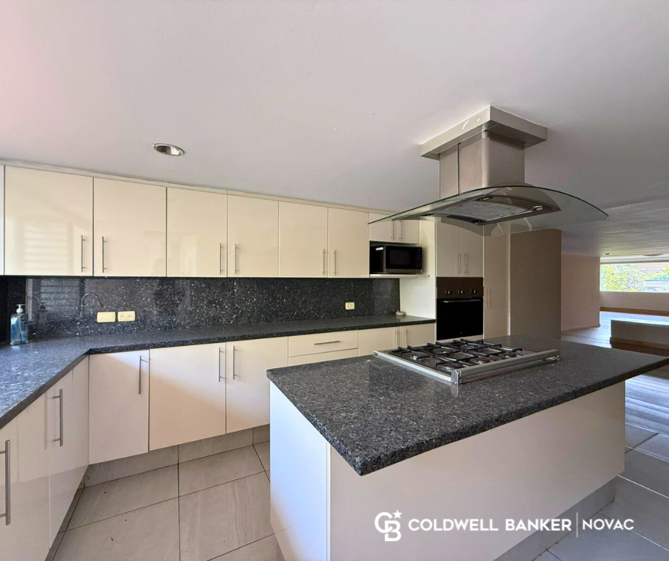 La cocina equipada es amplia y moderna, con excelente iluminación natural gracias a sus grandes ventanales, creando un ambiente cálido y funcional. Además, dispone de 2 lugares de estacionamiento, calefacción, vestidores amplios y espacios bien distribuidos que aportan comodidad en cada rincón.