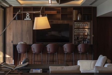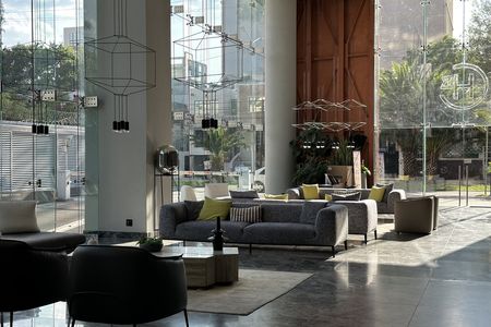 Apartamento de luxo no Hotel Demetria, vendido mobiliado com móveis de designers internacionais.
