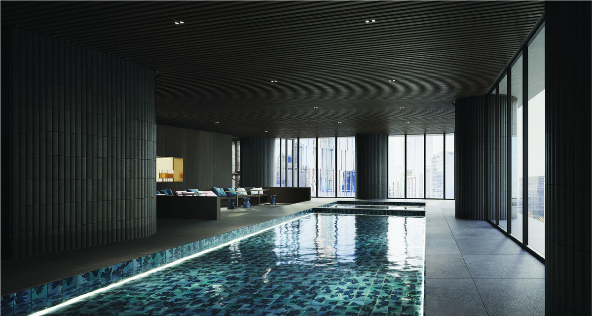 Amenidades destacadas: Sky lounge con vistas panorámicas, Alberca climatizada y terraza al aire libre.