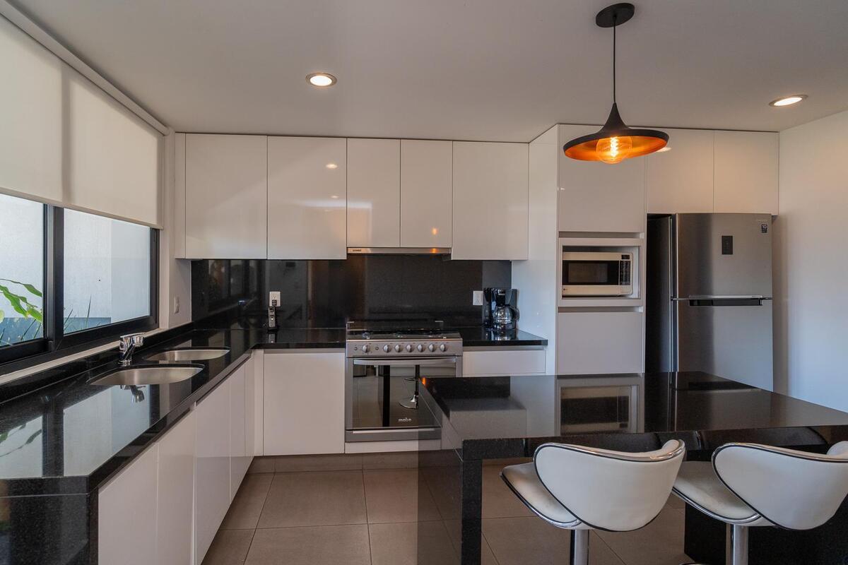 – Cozinha moderna com bancadas de granito e amplos armários.