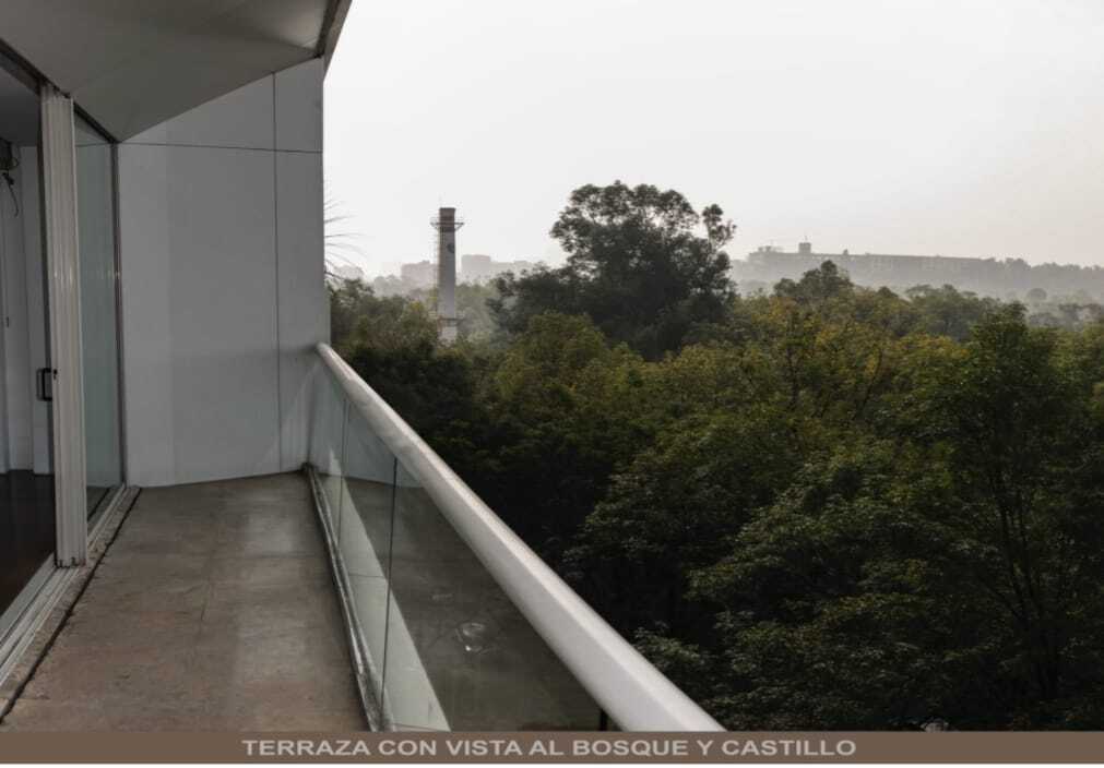 Sala, comedor y estudio con vista panorámica al Bosque y Castillo de Chapultepec.
