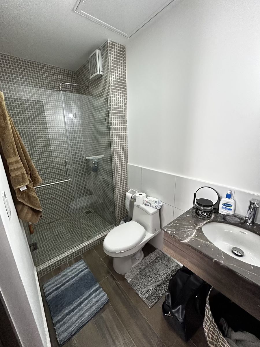 ✅ Cocina equipada con estufa eléctrica, refrigerador, microondas, tarja, cubierta de cuarzo, campana, lavasecadora