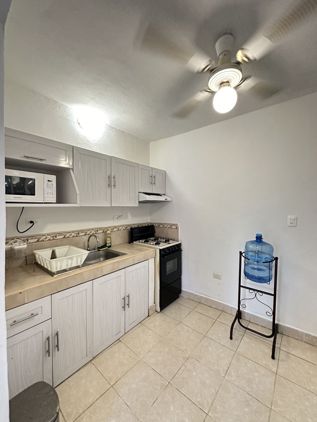 NOTA: El departamento se puede entregar con cama king size o sin la cama, cuenta con ventiladores, A|C, refrigerador, estufa, horno microondas, lavadora, calentador y comedor para 2 personas.