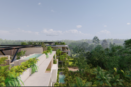 Apartamento de pé direito duplo, em um campo de golfe, com terraço duplo, sala de TV, clube de praia, em Corasol, Playa del Carmen, pré-construído.