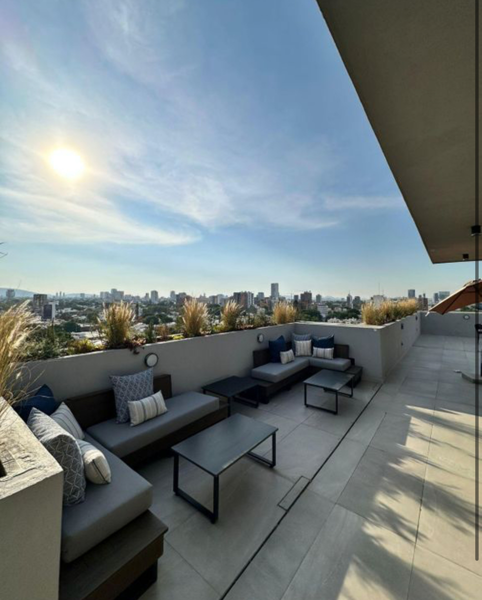 * Espacios exteriores: Terraza, balcones y roof garden para disfrutar del aire libre y vistas espectaculares.