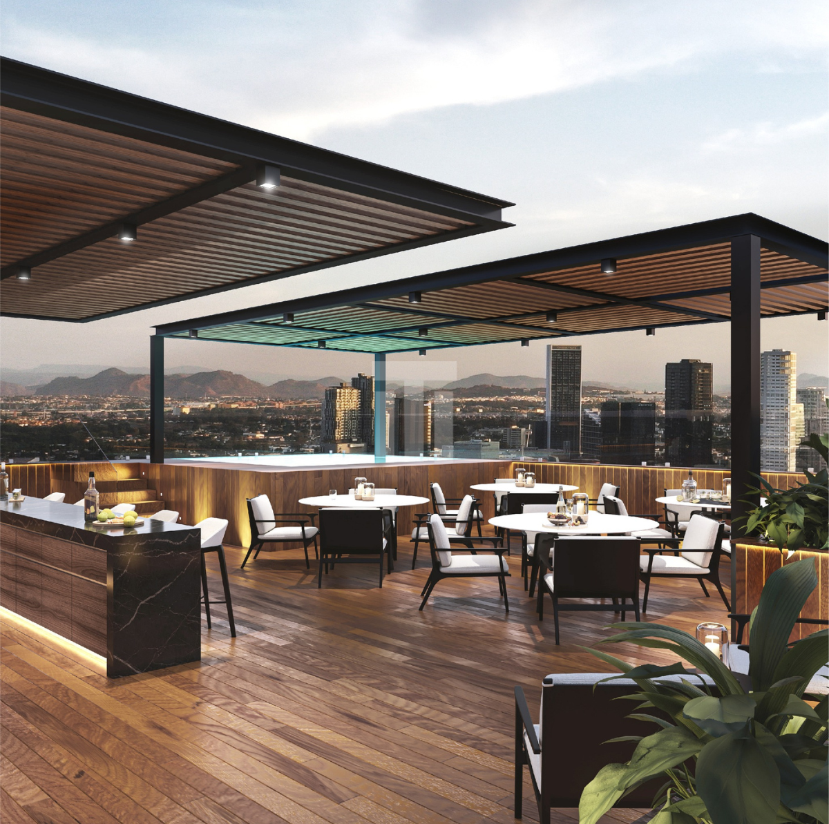 Parque central privado de 9,000 m2 | Más 17,000 m2 de áreas verdes | más 25,000 de espacios abiertos | Alberca infinita | alberca para niños | Jacuzzi | Microclima | Centro comercial | Sundeck | Sky bar | Sky lounge | Fire pit | Ciclopuerto | Pet friendly | Sistema de alta seguridad.