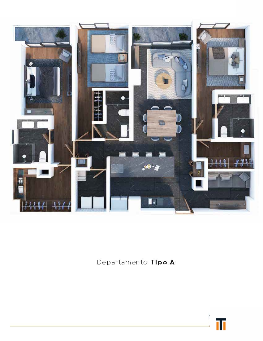 134 m2 de construcción más 8 m2 de balcón | 3 recámara | 3 baño | 3 Walking closet | Cocina | Comedor | Alacena | Sala | Acabados de lujo | Fan & Coil | Bodega de sotano | 2 cajón de estacionamiento.