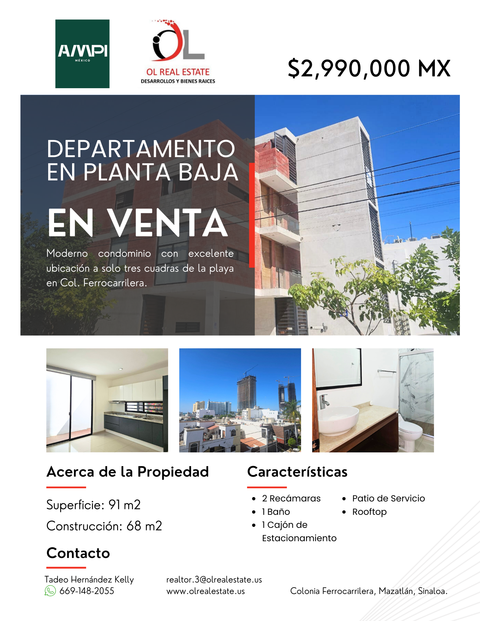 Condomínio moderno com excelente localização a apenas três quarteirões da praia na Col. Ferrocarrilera.