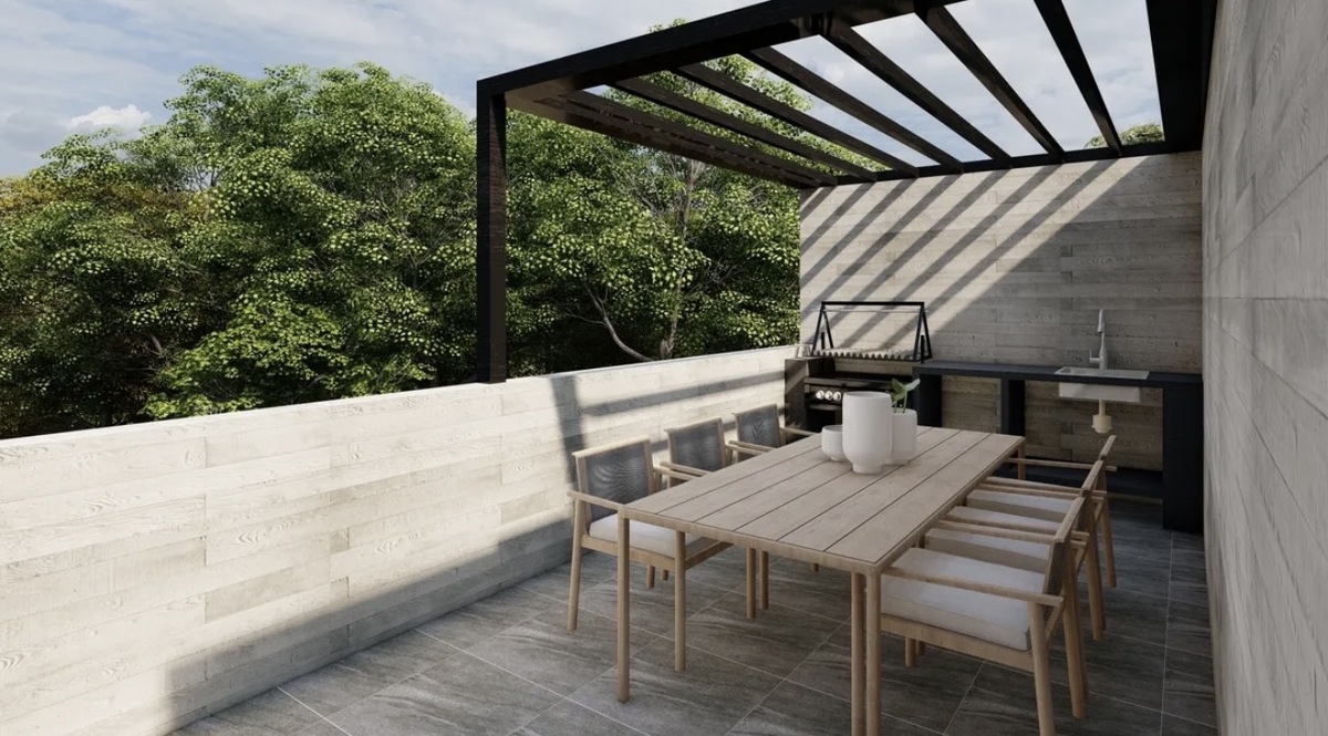 El edificio ofrece amenidades exclusivas: roof garden común perfecto para reuniones al aire libre, gimnasio equipado, lobby de fácil acceso, garantizando seguridad y confort.