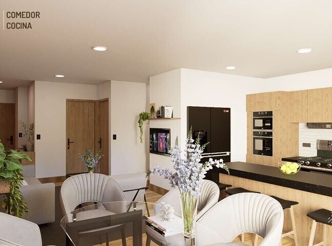 de 85 m2 con 2 recamaras, 2 baños, balcón, área de lavado, sala comedor, roof privado, 1 cajón de estacionamiento entrega a 12 meses