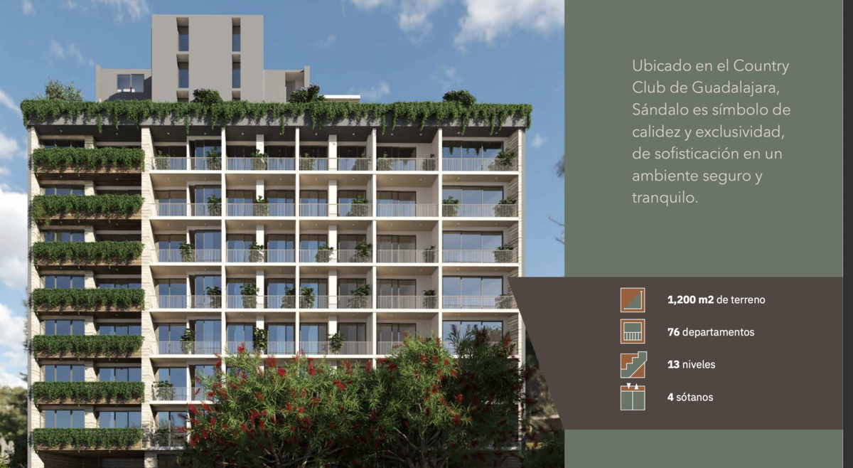 Vive el lujo, la exclusividad y la plusvalía en una de las zonas más codiciadas de Guadalajara. Sándalo es un desarrollo de 13 niveles con 76 departamentos diseñados para quienes buscan sofisticación, seguridad y una ubicación inmejorable.
