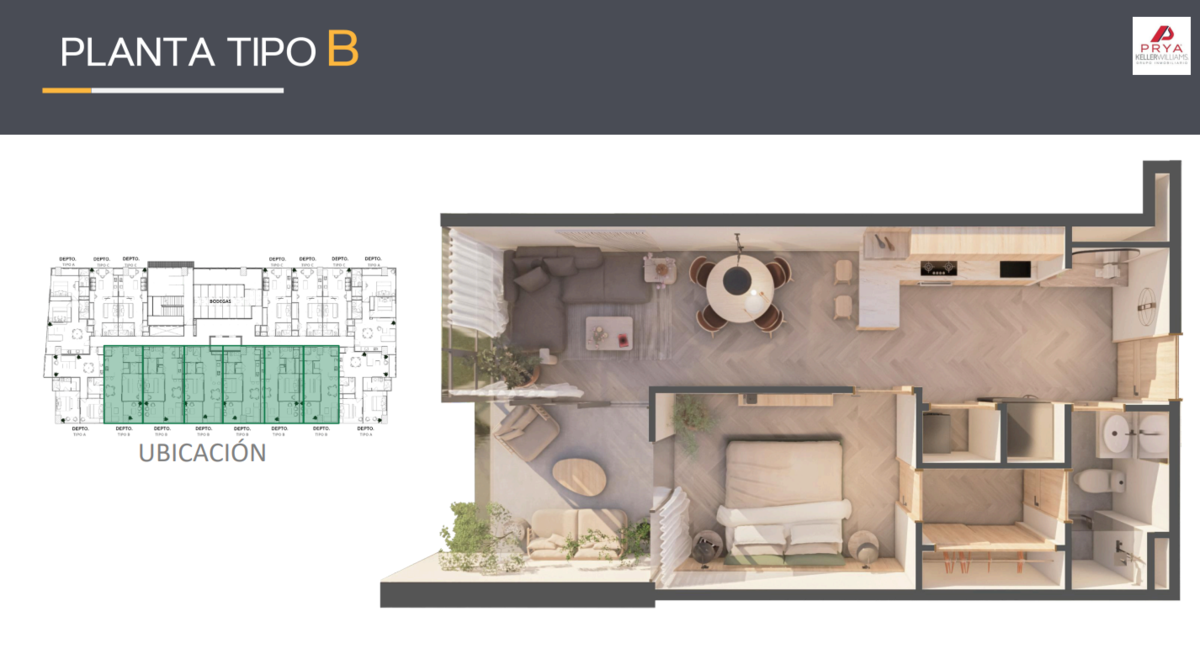 • Tipo: Loft de 1 recámara