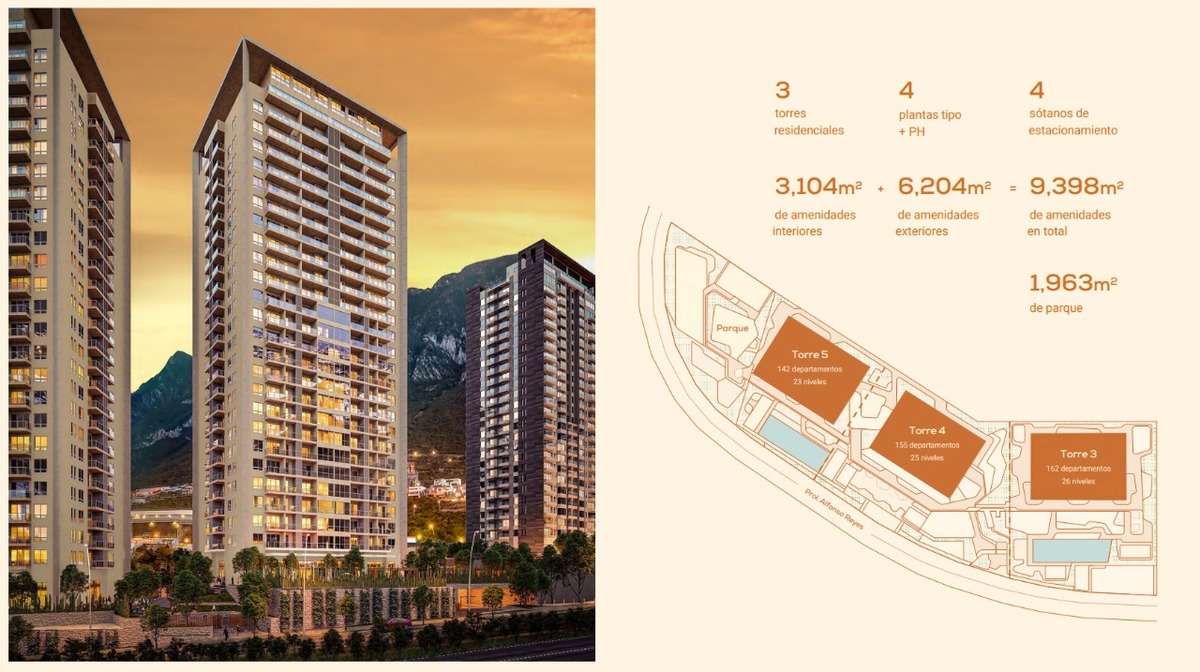 Actualmente estamos en PREVENTA de la Torre 4 y Torre 5, que compartirán accesos y amenidades. Los departamentos se entregan con acabados interiores, listos para personalizar a tu estilo.
