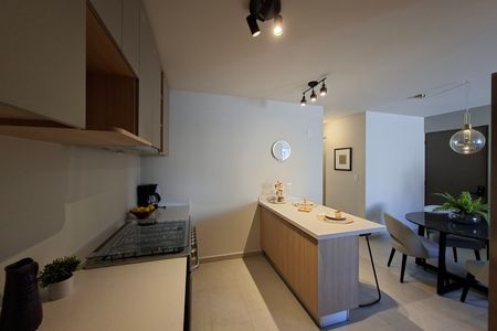 Cozinha equipada com área de lavanderia
